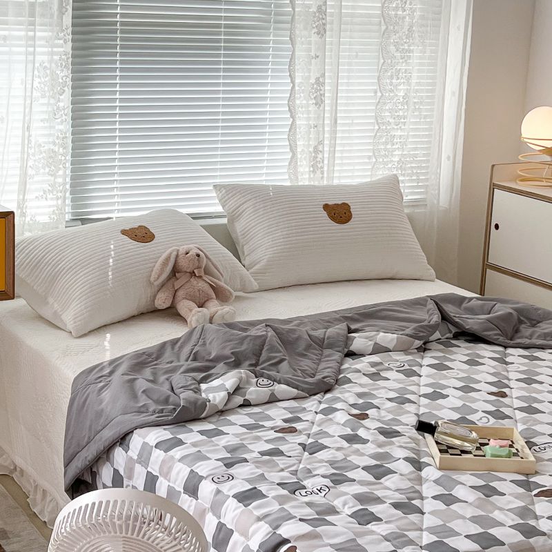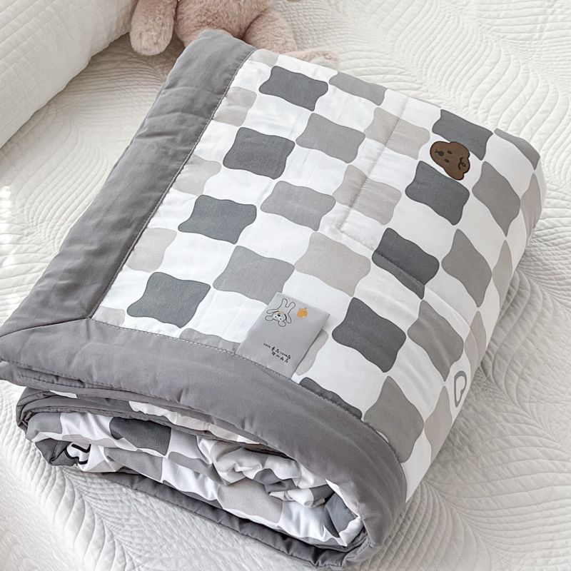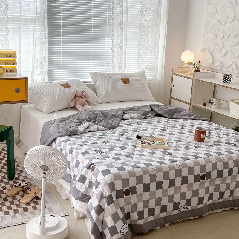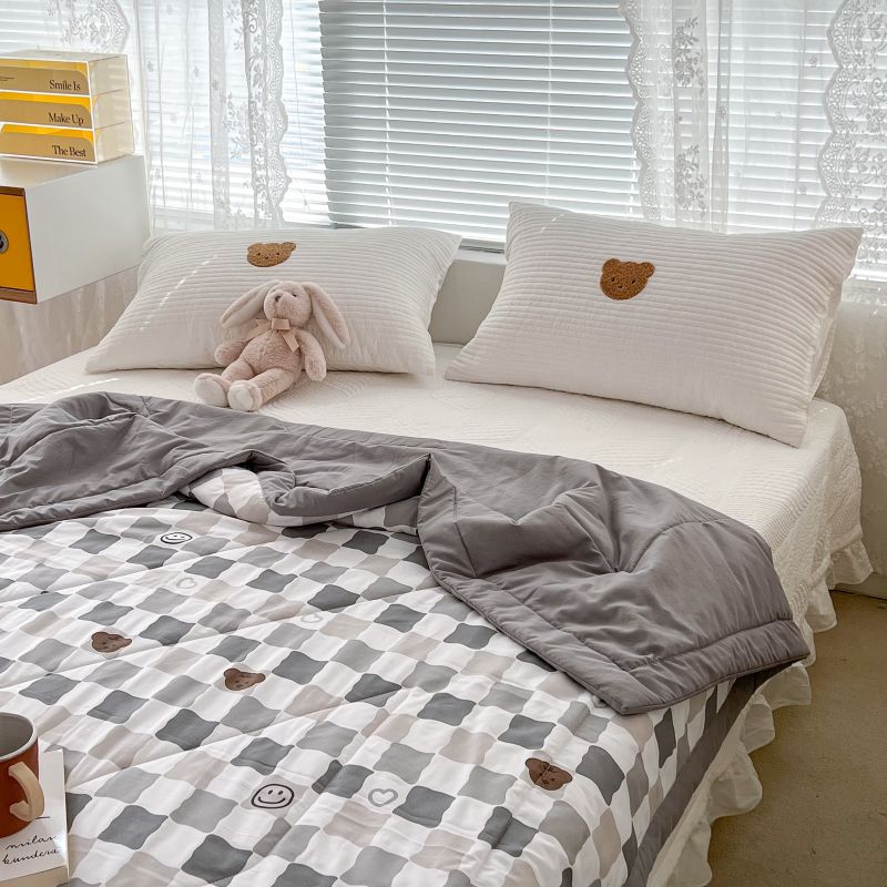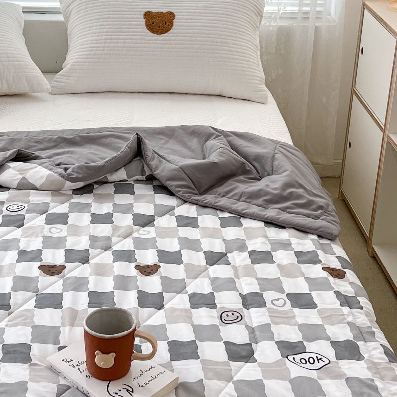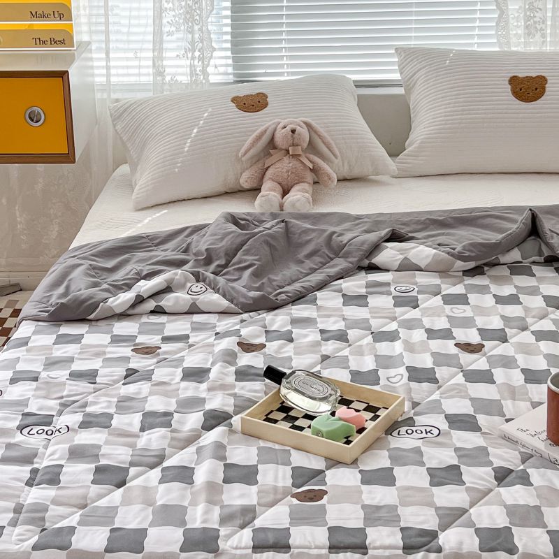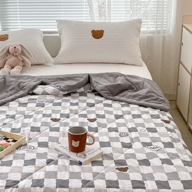 昔可 2022新款水洗亲肤夏被子被芯 灰色小格熊