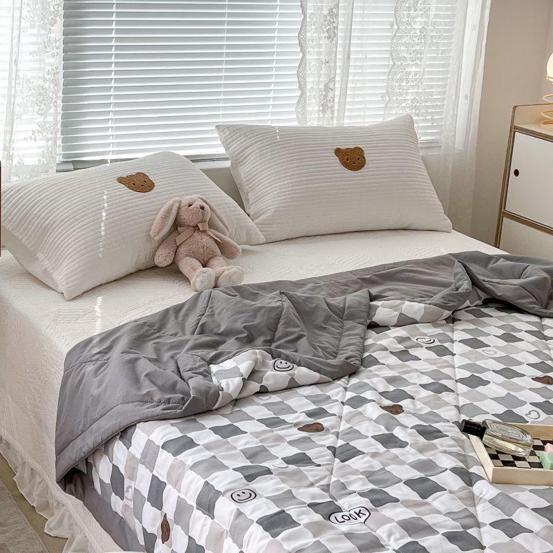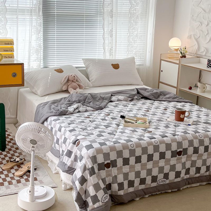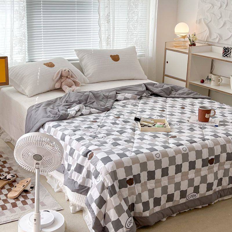 商品名称:昔可 2022新款水洗亲肤夏被子被芯 灰色小格熊