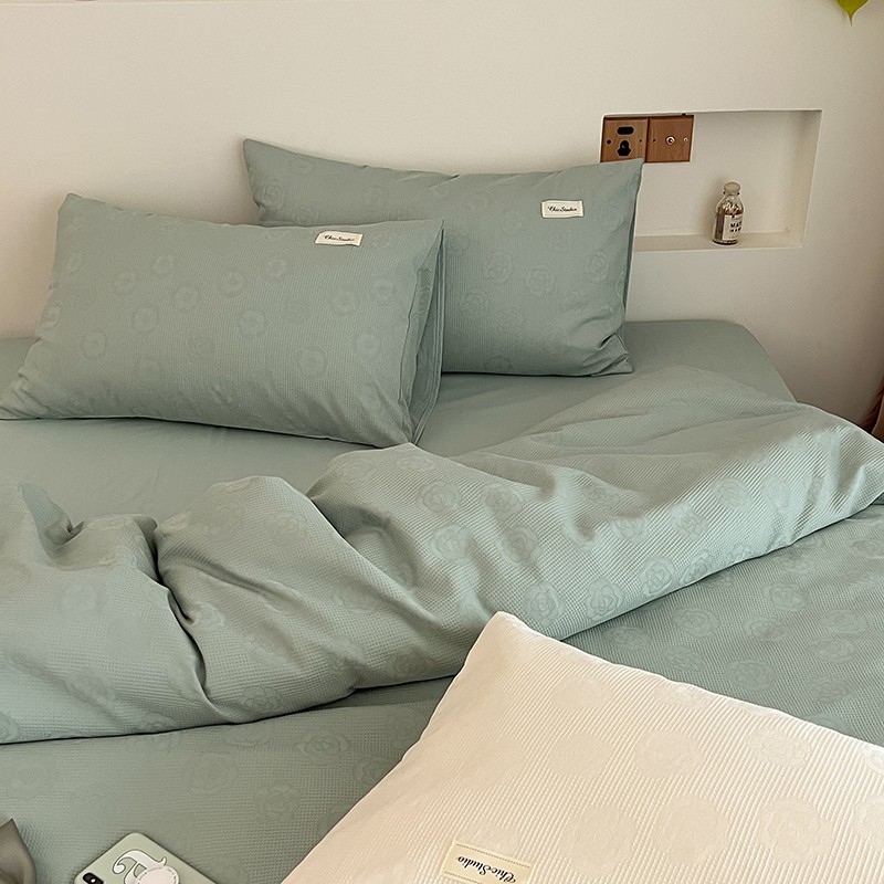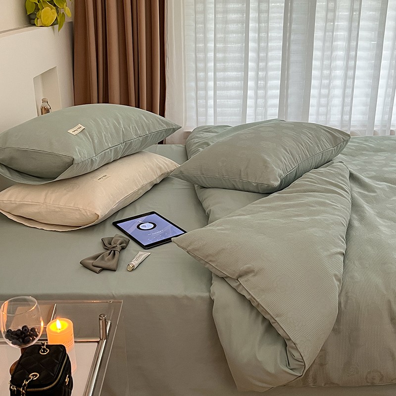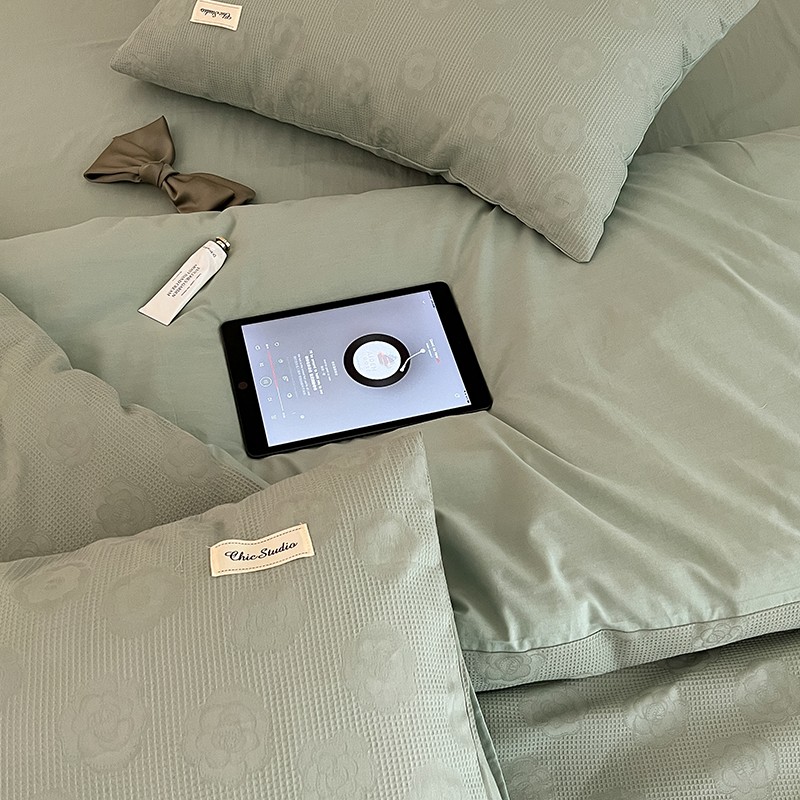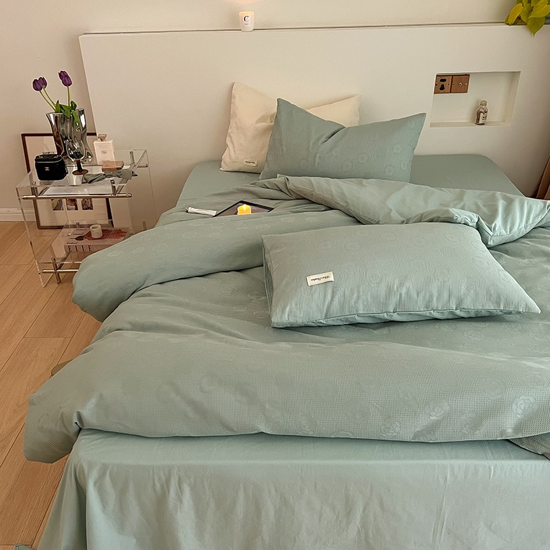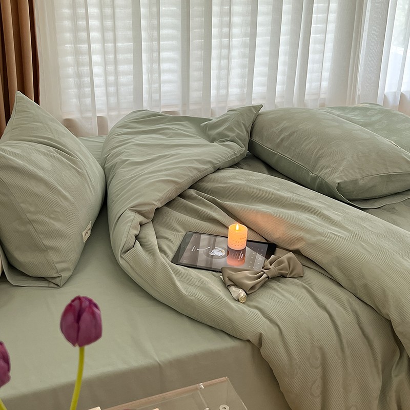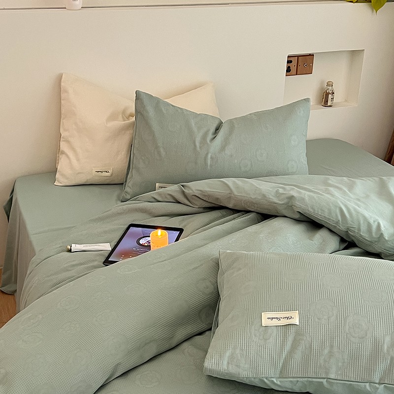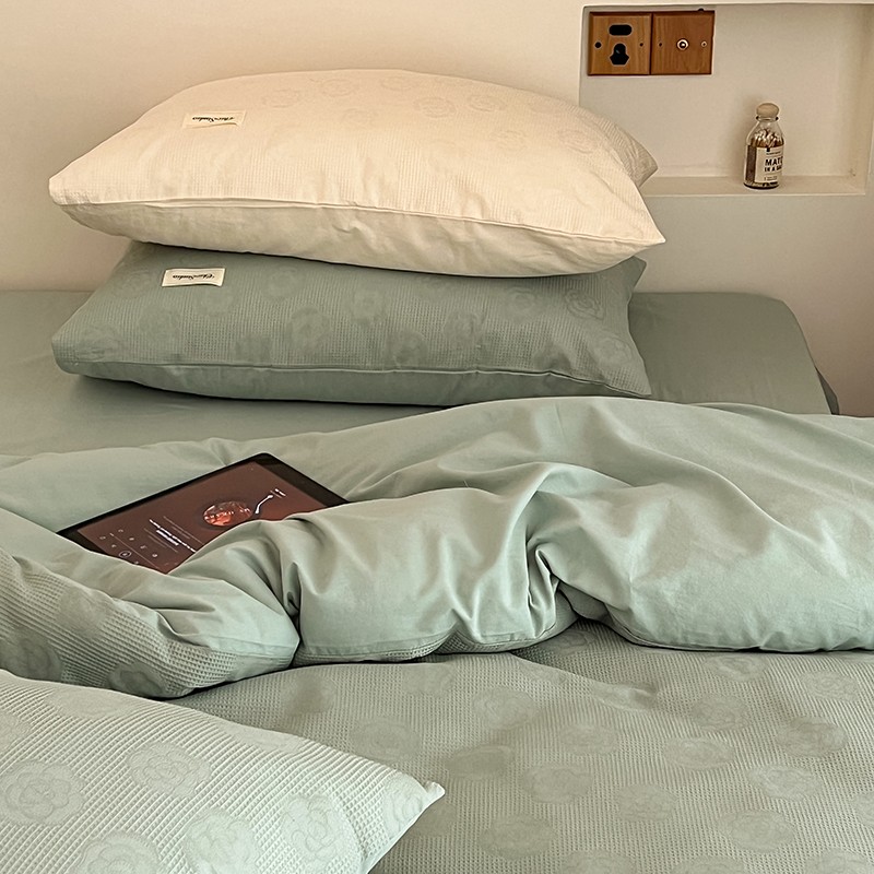 昔可 2022新款60支水洗棉华夫格提花四件套拍法二 山茶薄荷绿