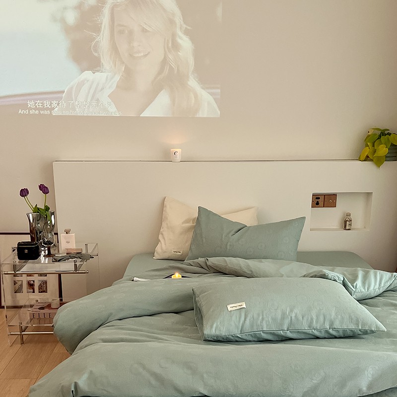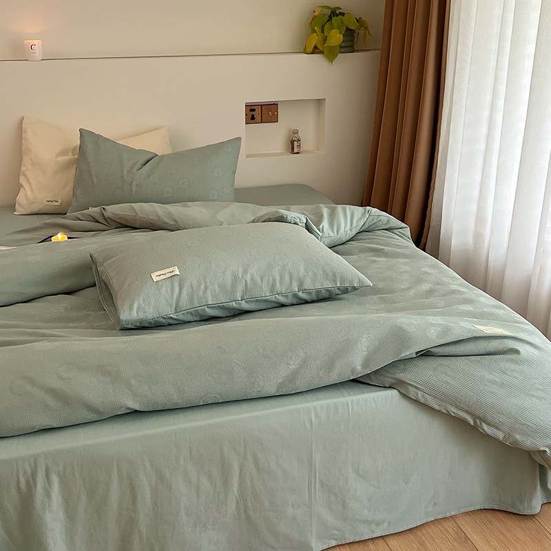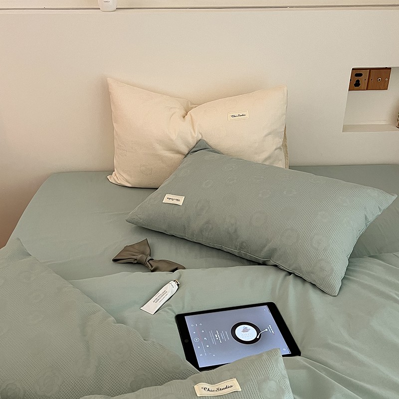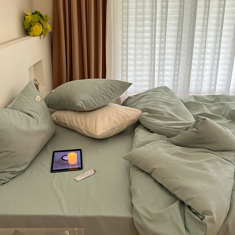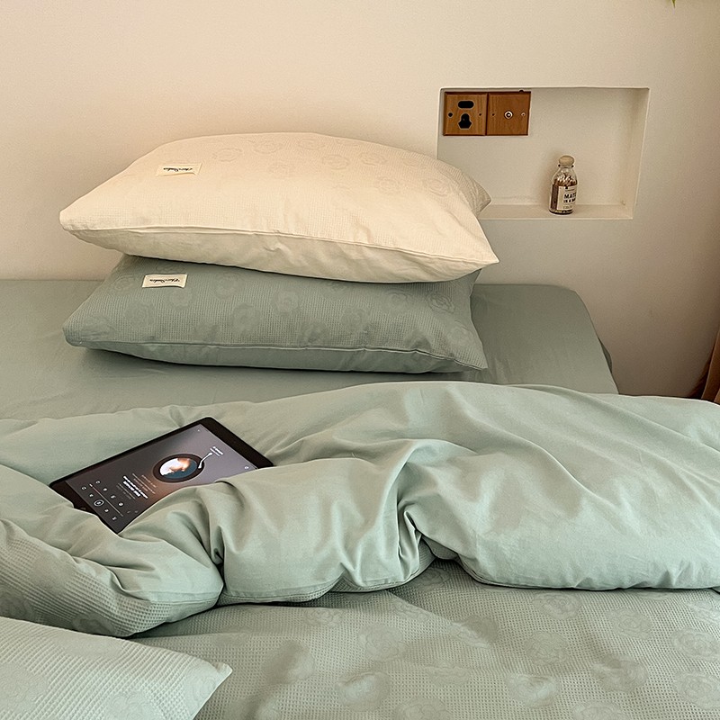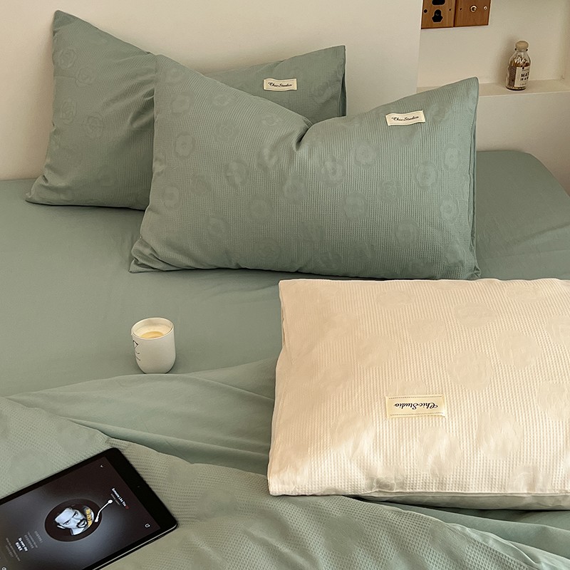 昔可 2022新款60支水洗棉华夫格提花四件套拍法二 山茶薄荷绿