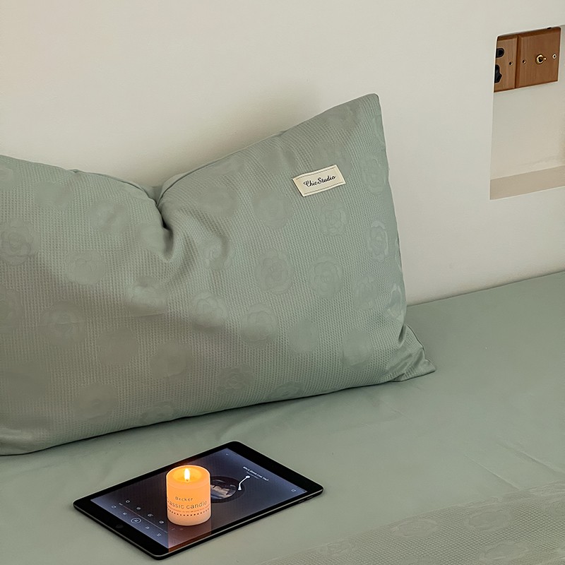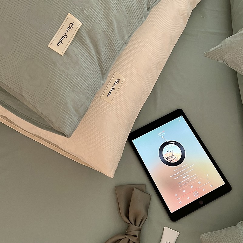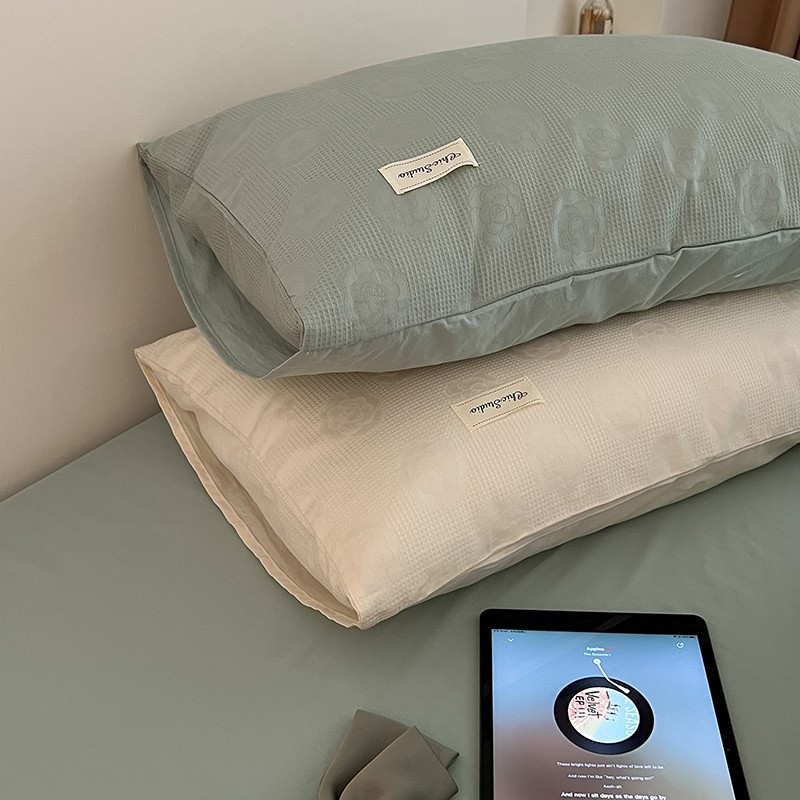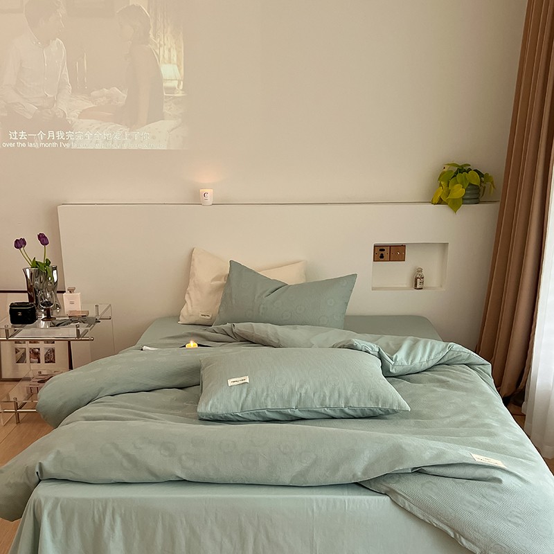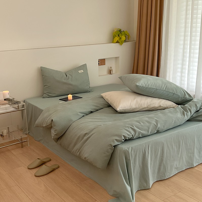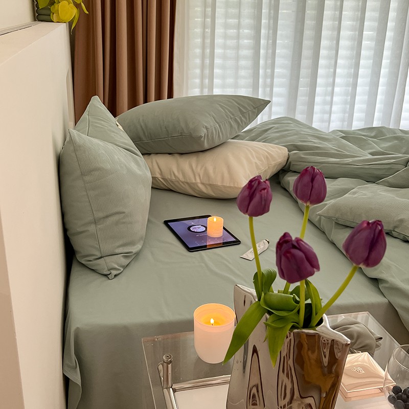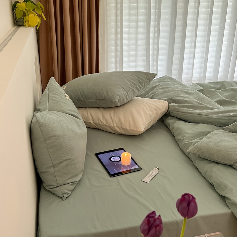 昔可 2022新款60支水洗棉华夫格提花四件套拍法二 山茶薄荷绿