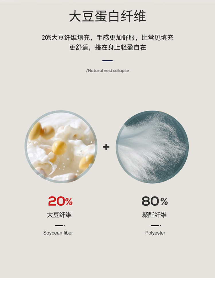填充纤维种类: 大豆蛋白改性聚酯纤维
