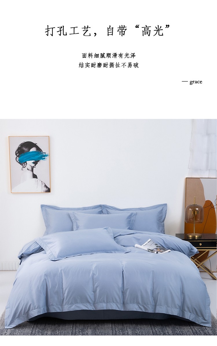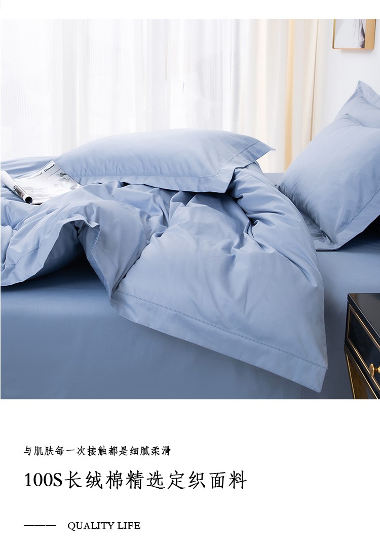 网客 2024新款100支长绒棉四件套 单色-蓝