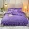 畅销被业 2022网红款水晶绒绗缝床裙绗缝被套款四件套法莱绒 紫雪青