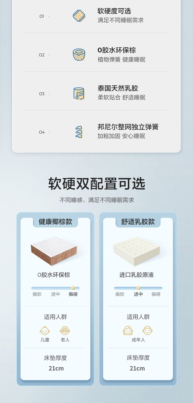 当前位置: 91家纺网 > 商品网购 > 床垫/床褥/床护垫 > 普通床垫 > 时奥 2022新款弹簧床垫-M23(针织面料) 独立弹簧+1.2棕+2.0乳胶(23cm)