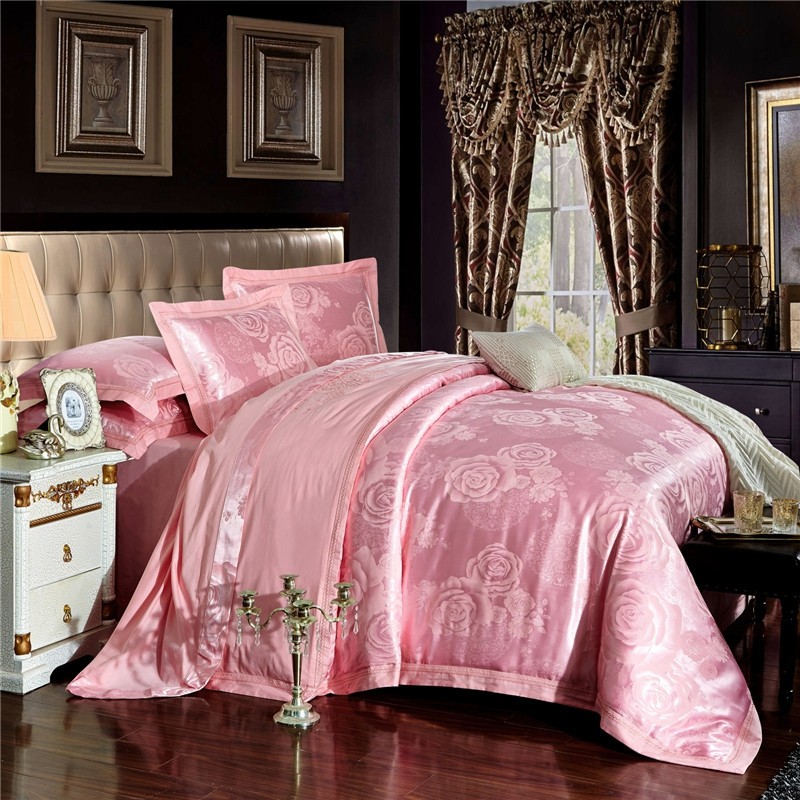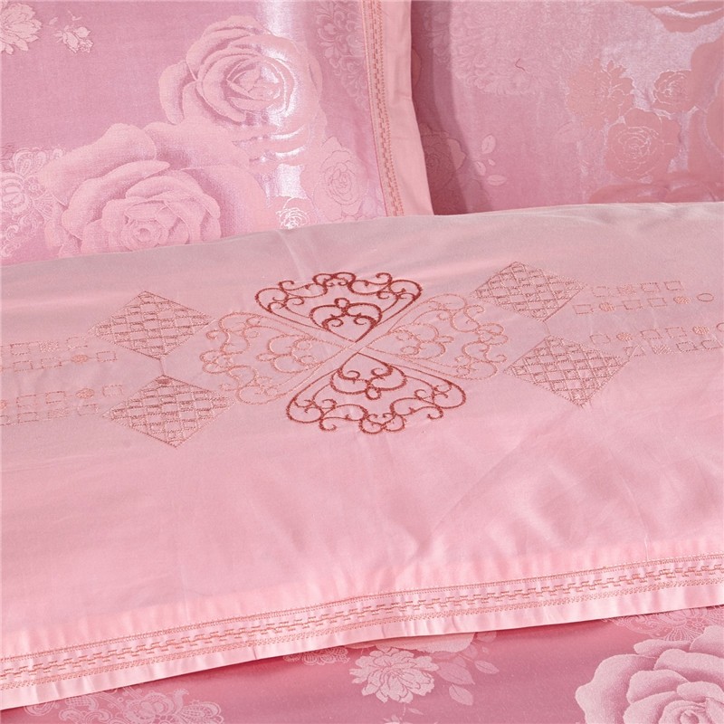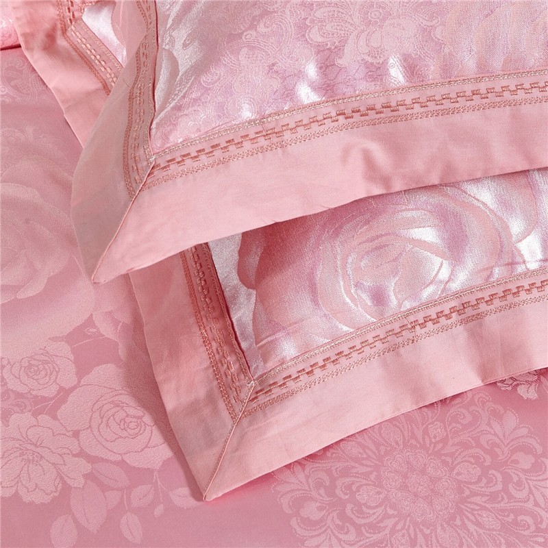 商品名称:卡迪亚 2022新款全棉13372贡缎提花四件套花意盎然粉玉