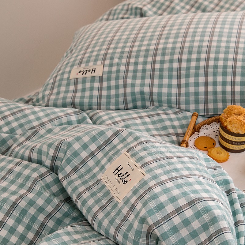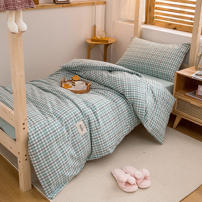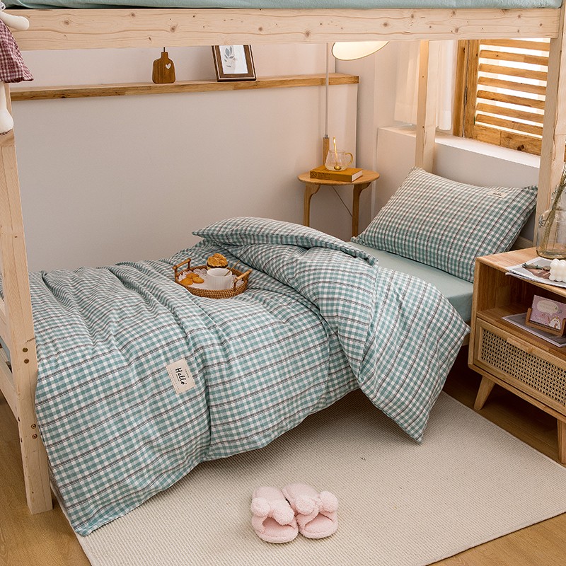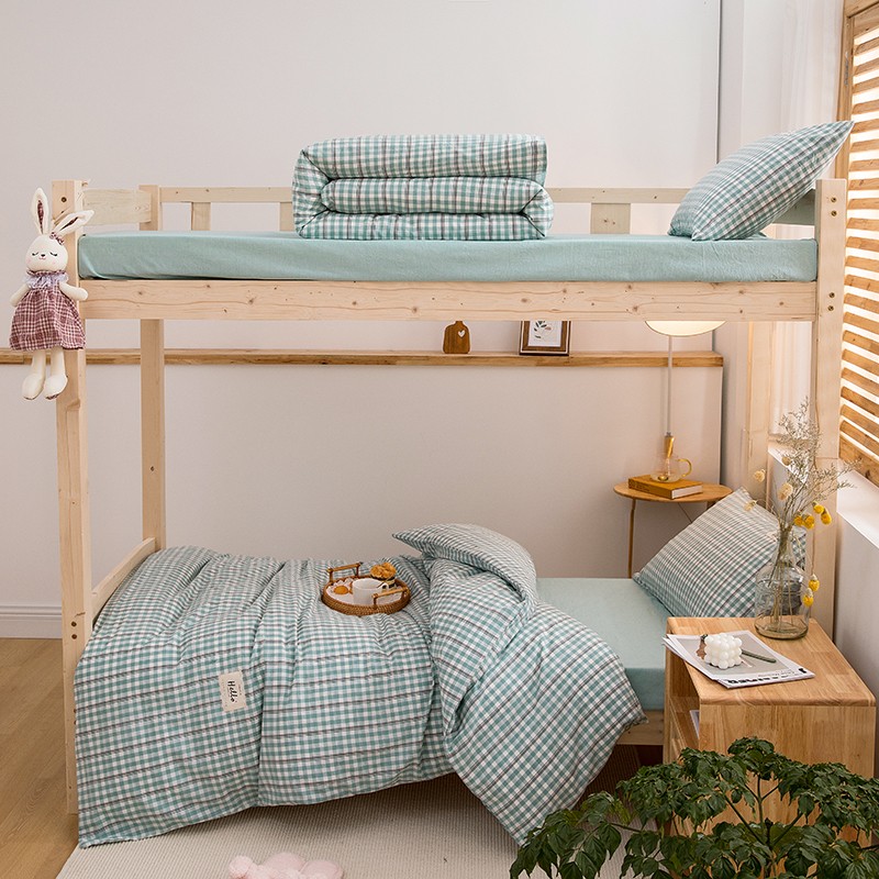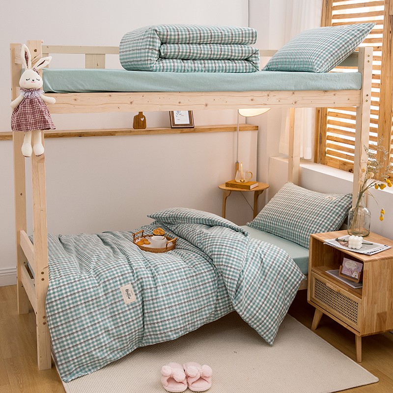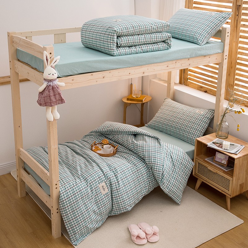 当前位置: 91家纺网 > 商品网购 > 床品套件 > 三件套 > 柠萌 新款A类全棉色织水洗棉学生上下铺全棉三件套 海蓝小格