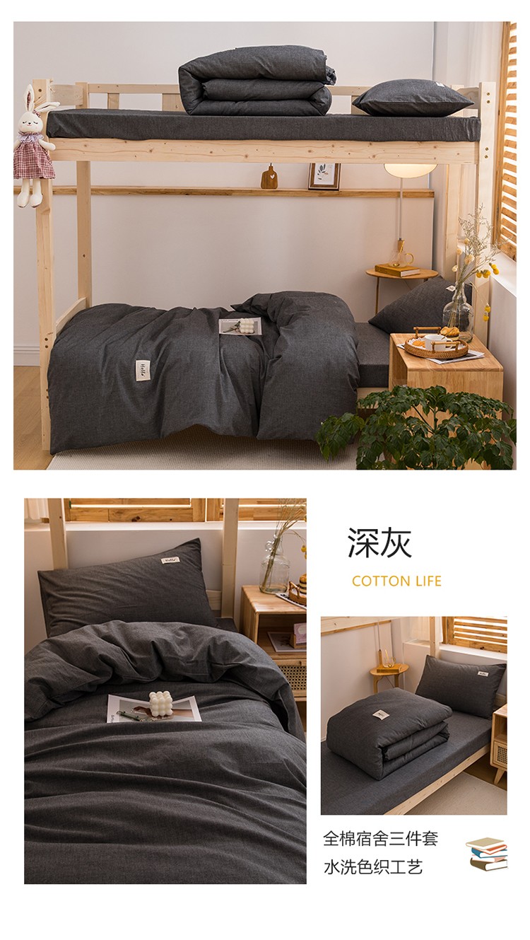 当前位置: 91家纺网 > 商品网购 > 床品套件 > 三件套 > 柠萌 新款A类全棉色织水洗棉学生上下铺全棉三件套 深灰