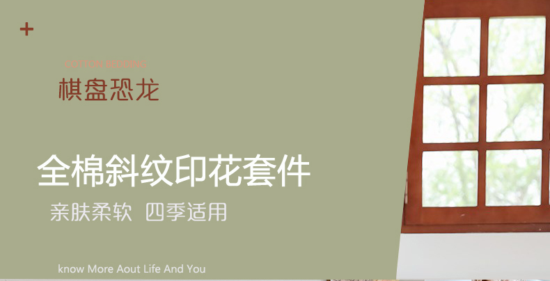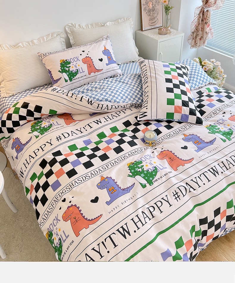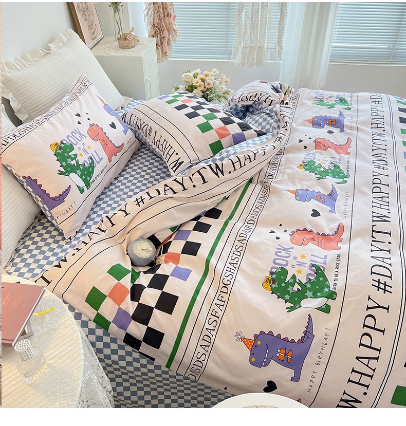 商品名称:麦伦 2022新款13372全棉儿童卡通系列四件套 棋盘恐龙