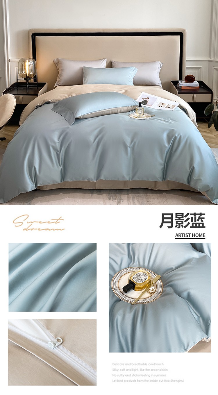 (总)798家纺 2025新款全棉双拼纯色良品四件套,碧绿+奶白,布鲁蓝+梧桐灰,豆绿+芍药粉,奶白+豆绿,奶白+青草绿,浅夏紫+芍药粉,肉肉粉+班尼咖,肉肉粉+千夏紫,肉肉粉+小雏菊,石灰+梧桐灰