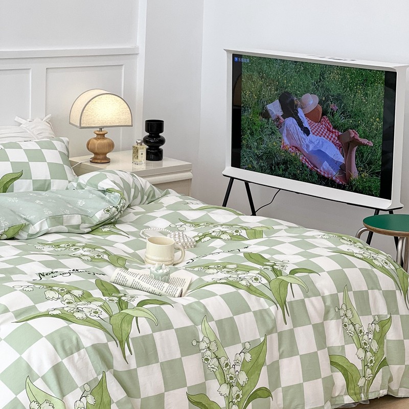 (总)昔可 2023新款全棉ins格子混搭系列四件套,ins简约绿格,粉蓝格,开心果格,学院格纹,粉绿格,海盐兰格,黄绿格,夏日蓝条,芝士黄条,紫芋泥芝士格