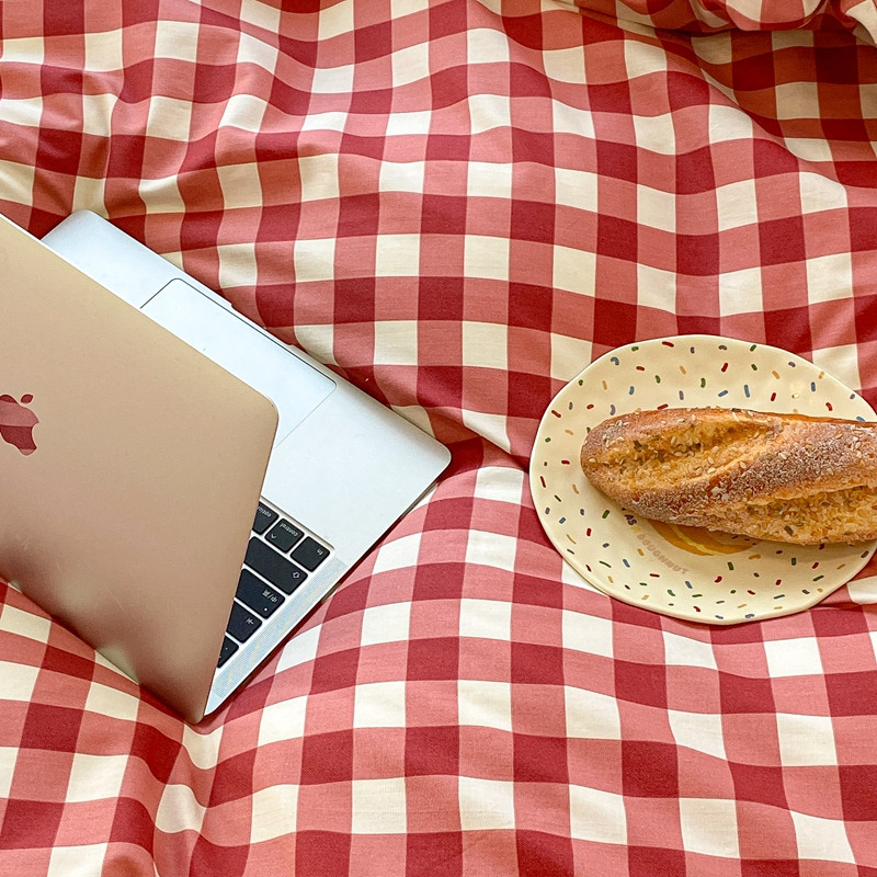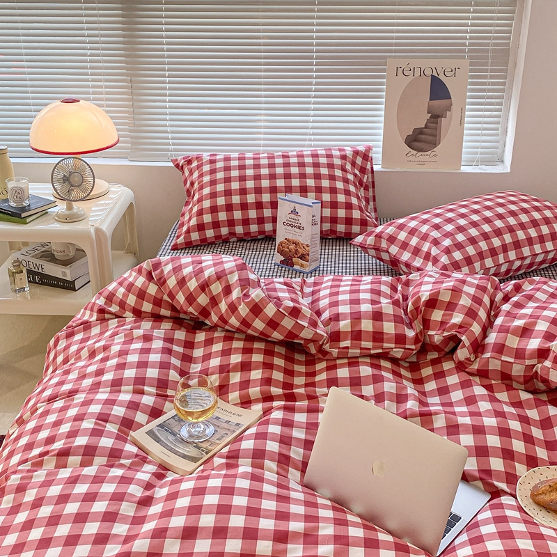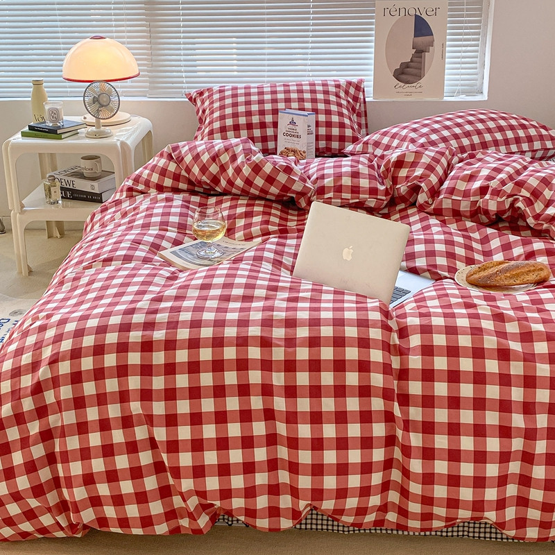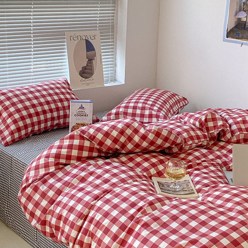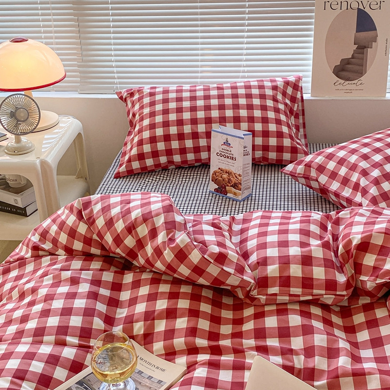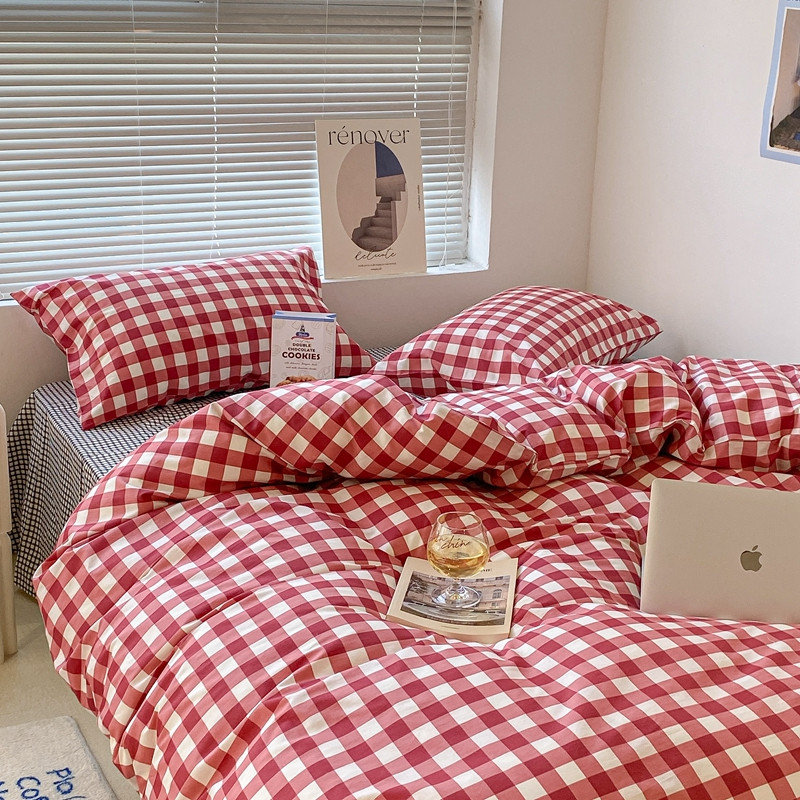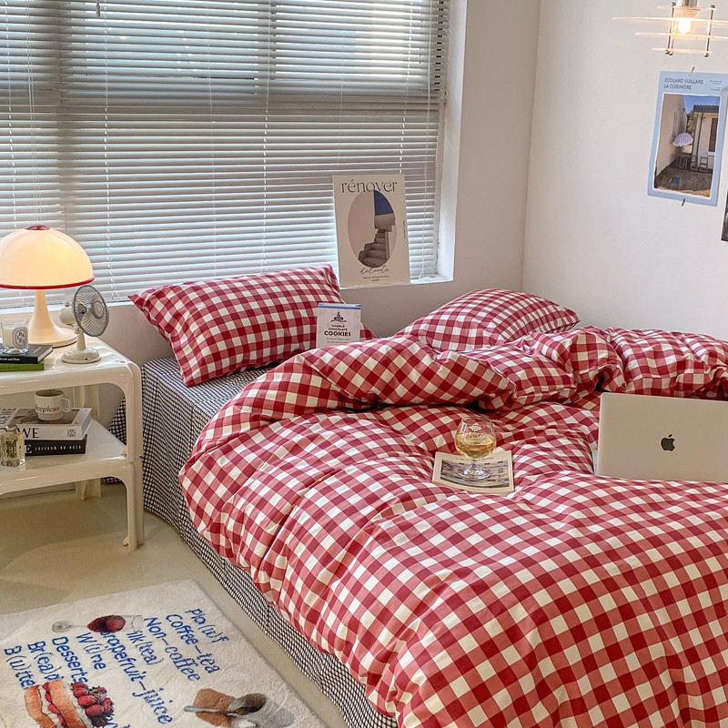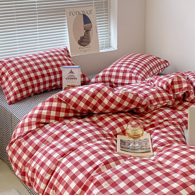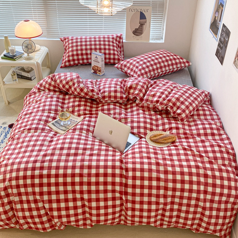 昔可家纺2022新款学生季格子全棉四件套 苏格兰红格