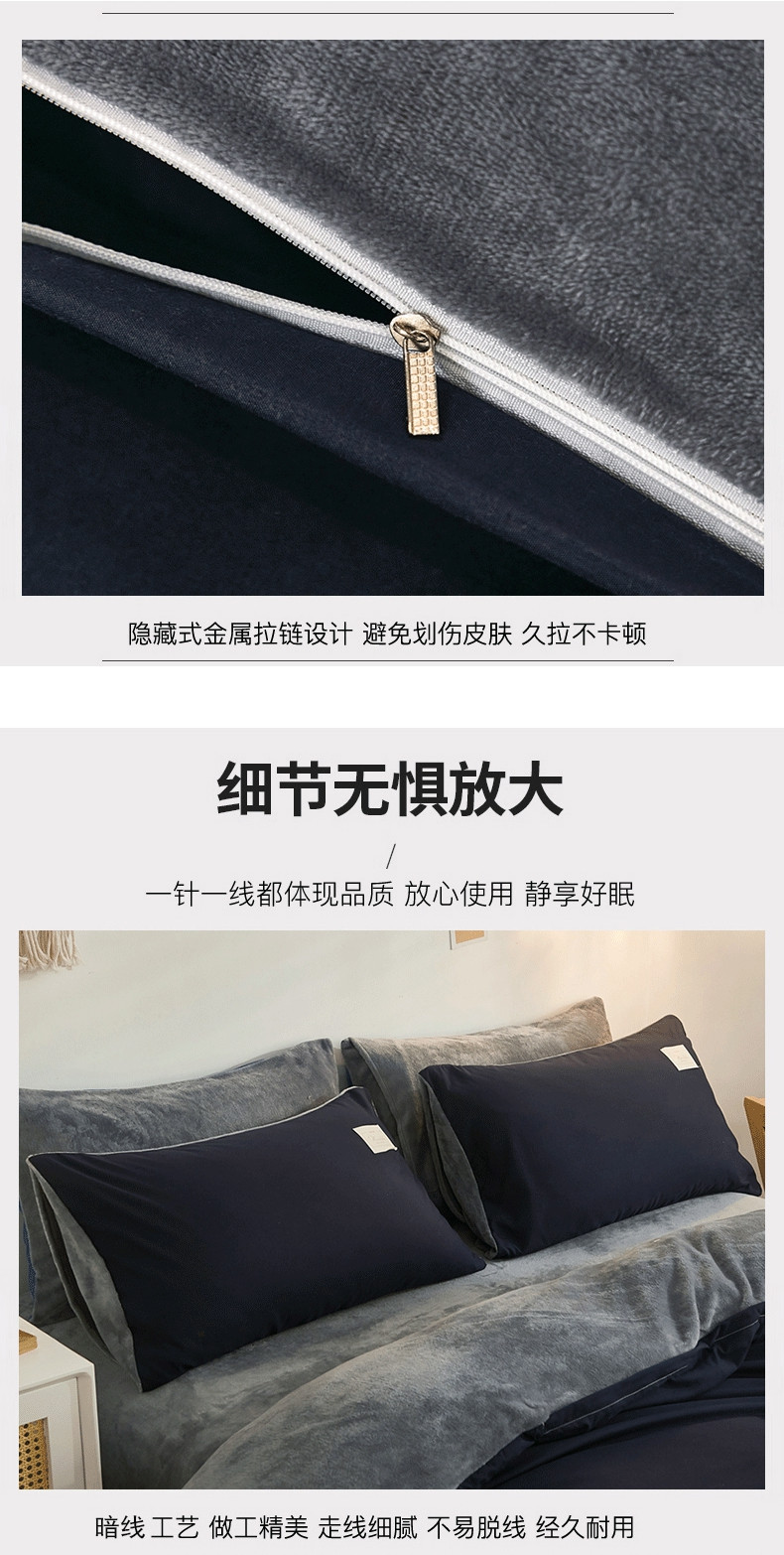 啊雅家居 2025新款水洗棉加绒单面绒被套 藏青加牛奶绒