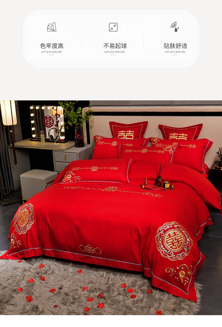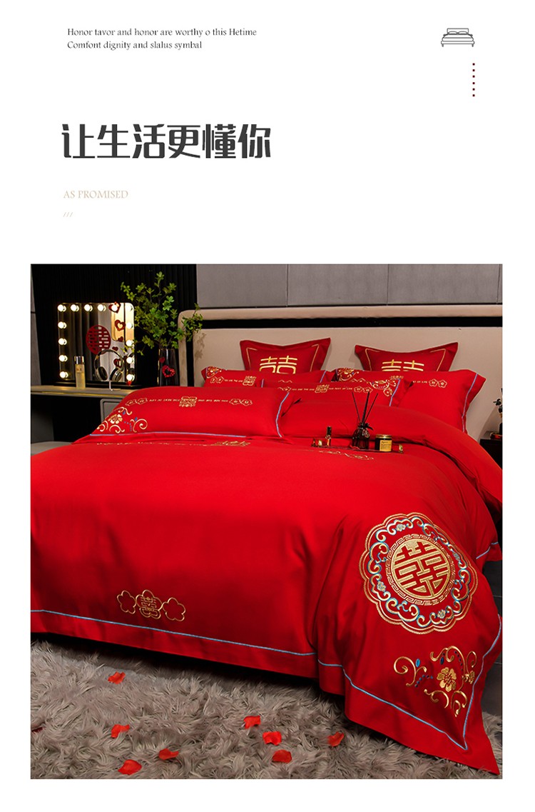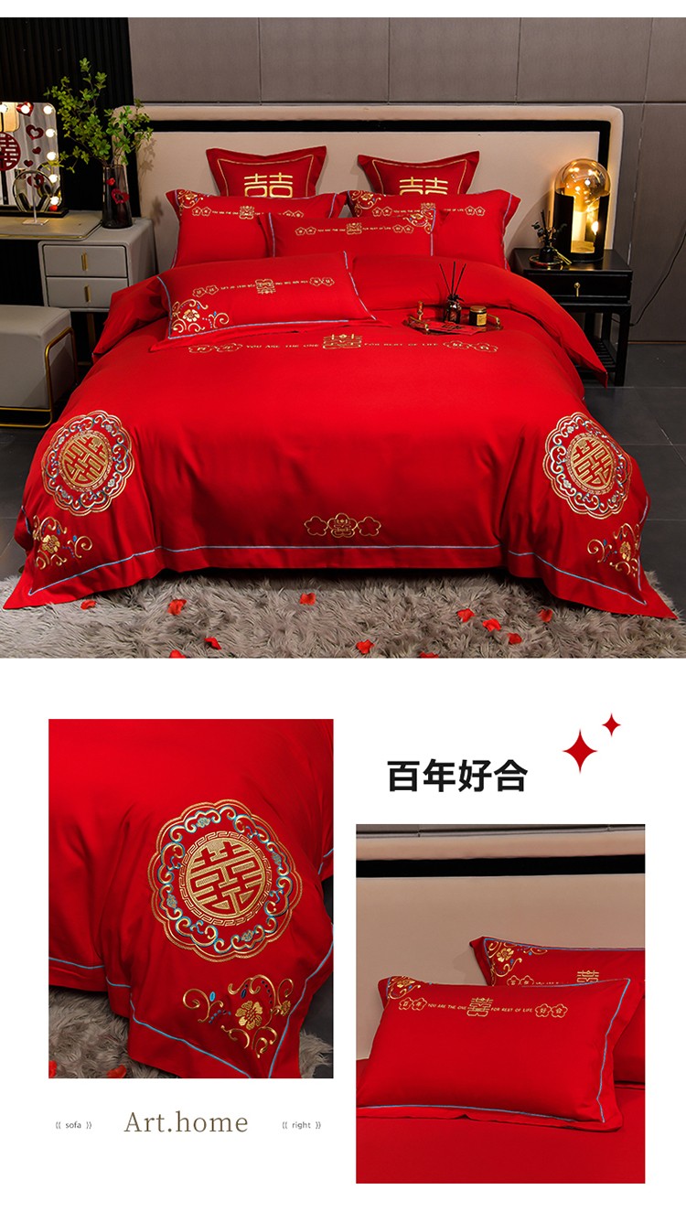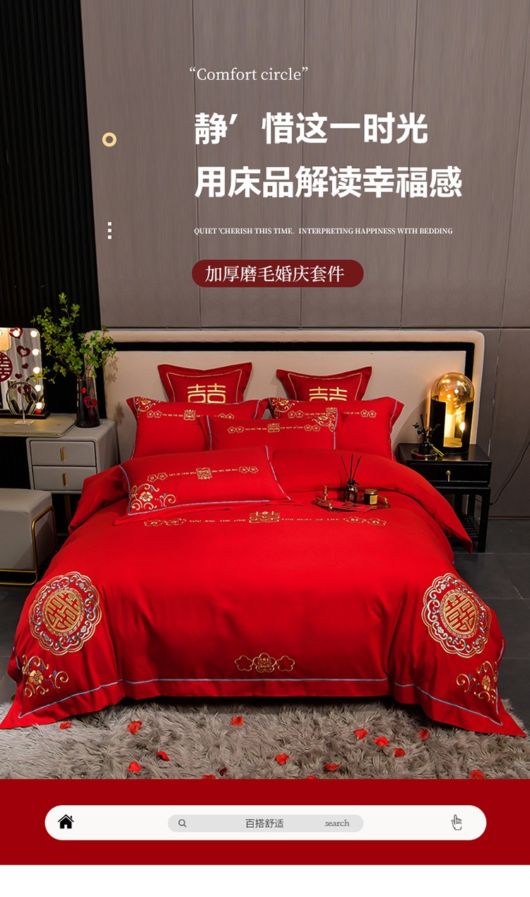 (总)金麦家纺 2025新款亲肤磨毛刺绣婚庆四件套,大喜,喜结良缘,喜愿,吾家有喜,喜爱,玫瑰有约