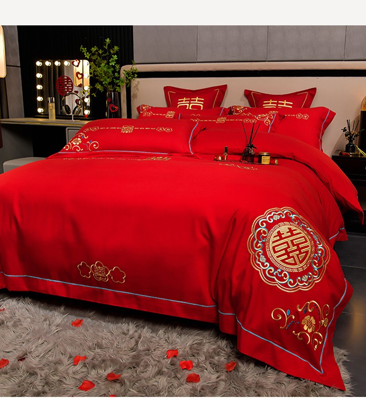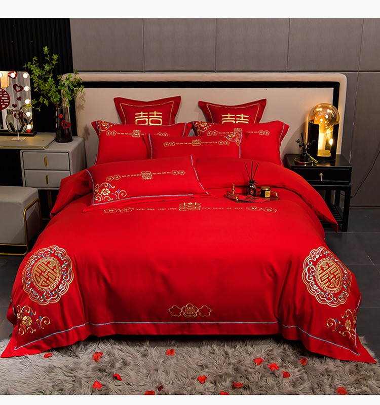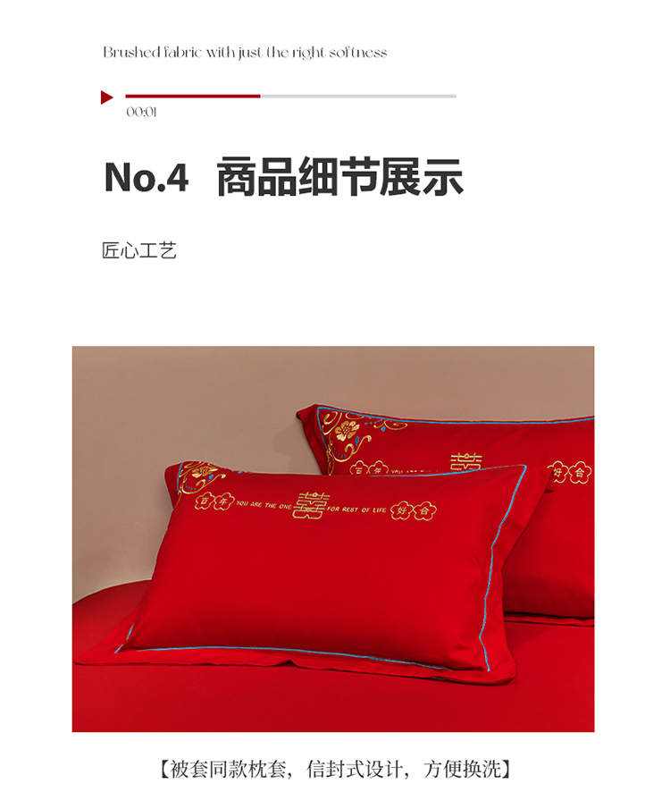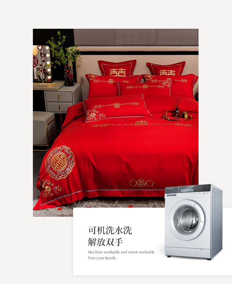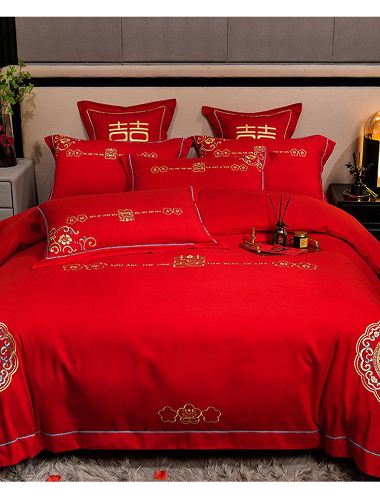 (总)金麦家纺 2025新款亲肤磨毛刺绣婚庆四件套,大喜,喜结良缘,喜愿,吾家有喜,喜爱,玫瑰有约