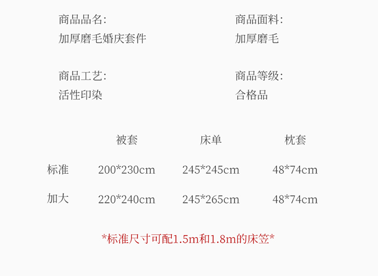 商品名称:金麦家纺2024新款磨毛婚庆四件套 百年好合
