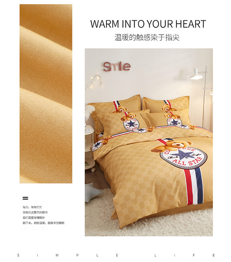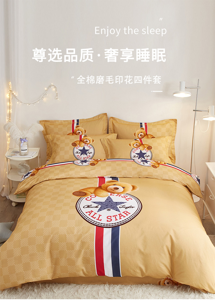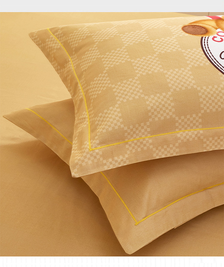 金纱玉纺2022新款全棉生态大版磨毛四件套萌趣熊-黄