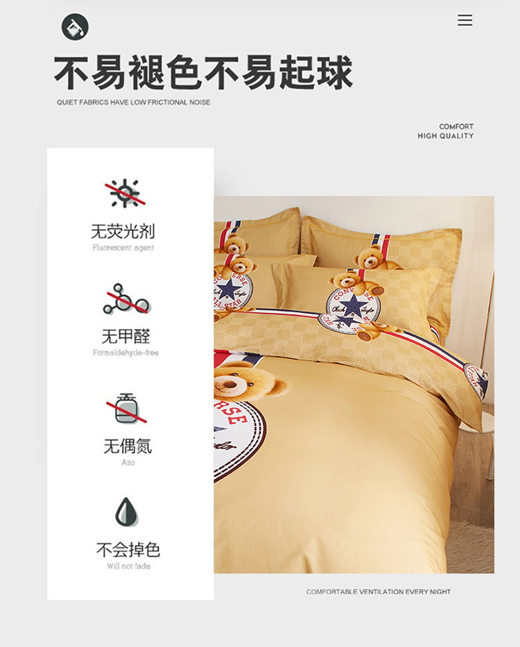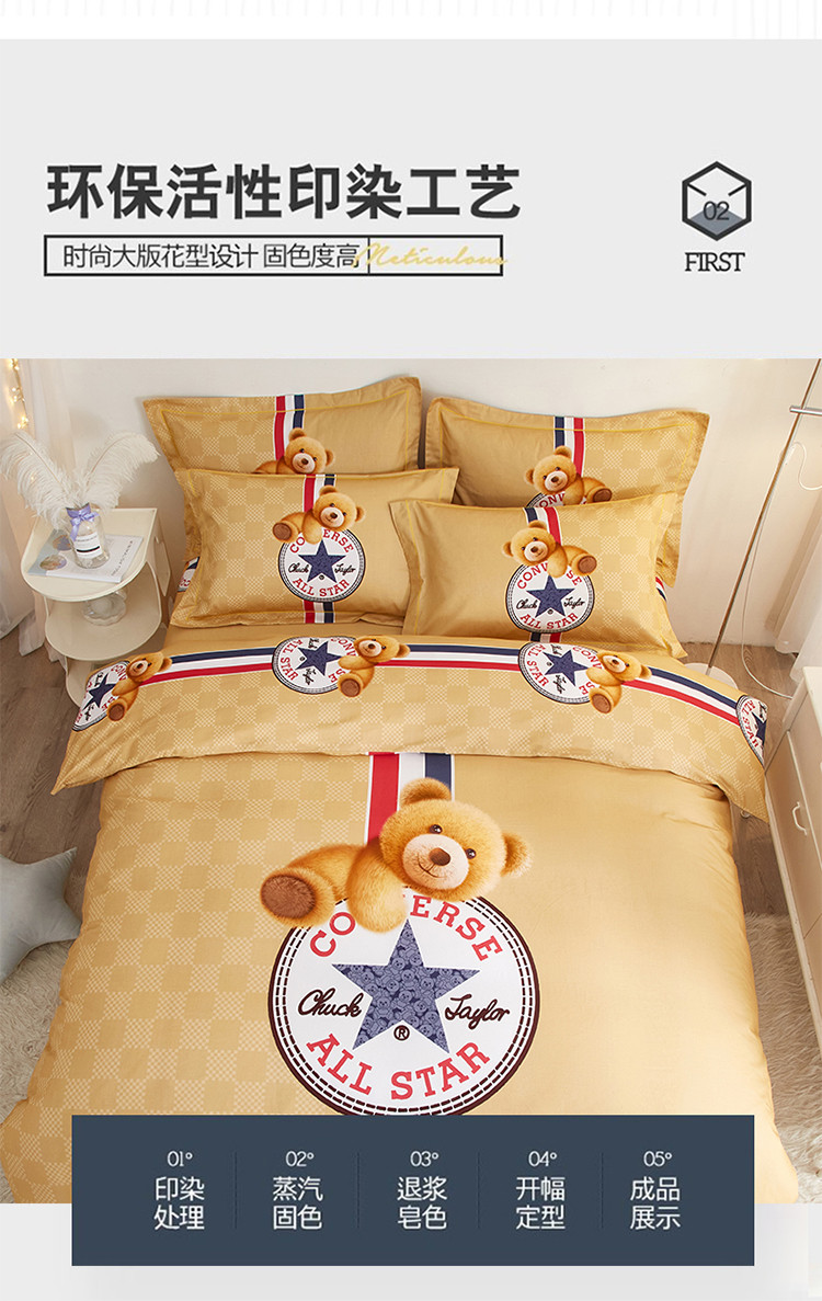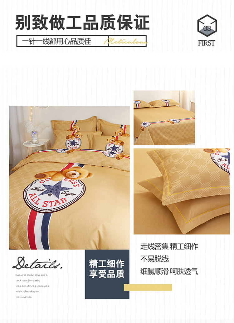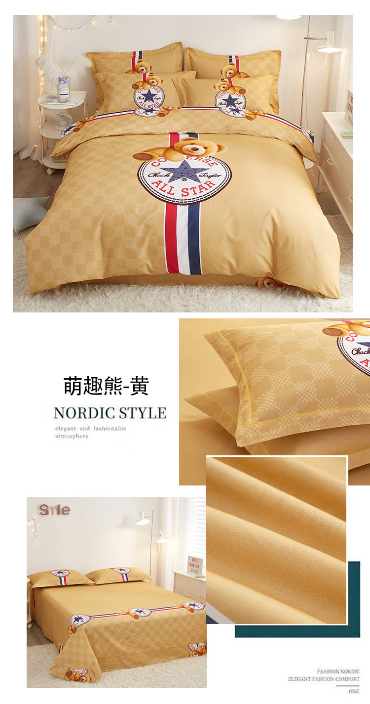 商品名称:金纱玉纺2022新款全棉生态大版磨毛四件套萌趣熊-黄