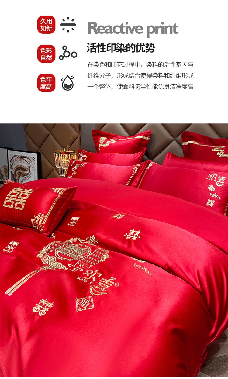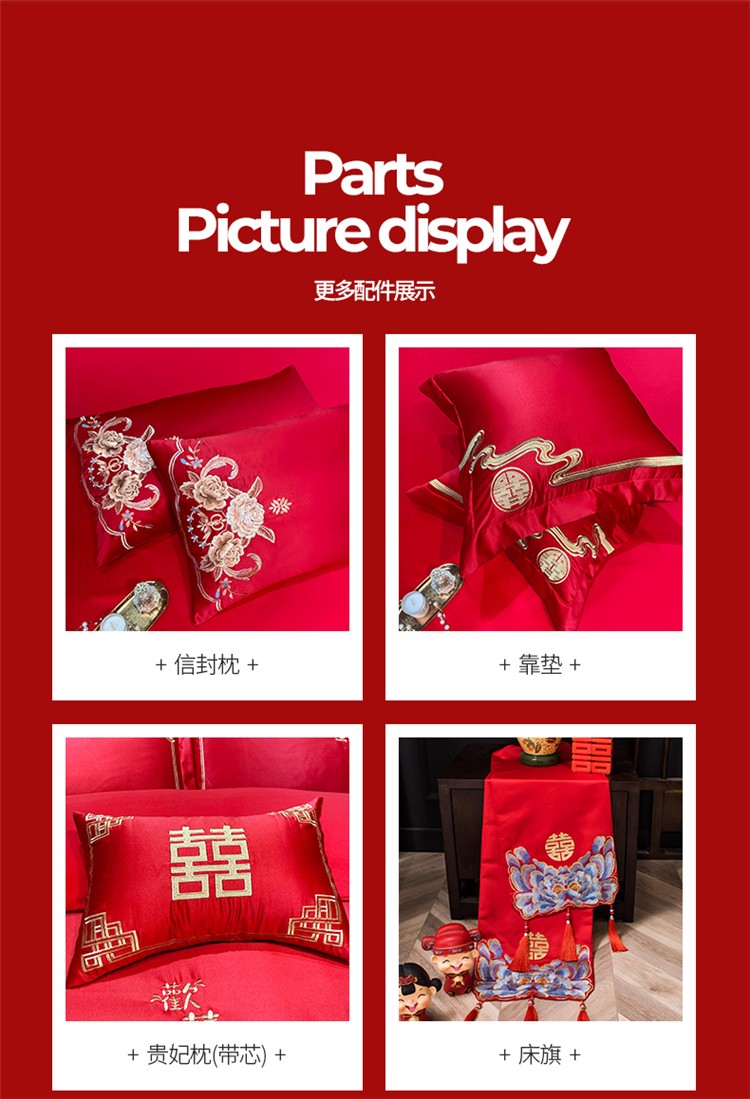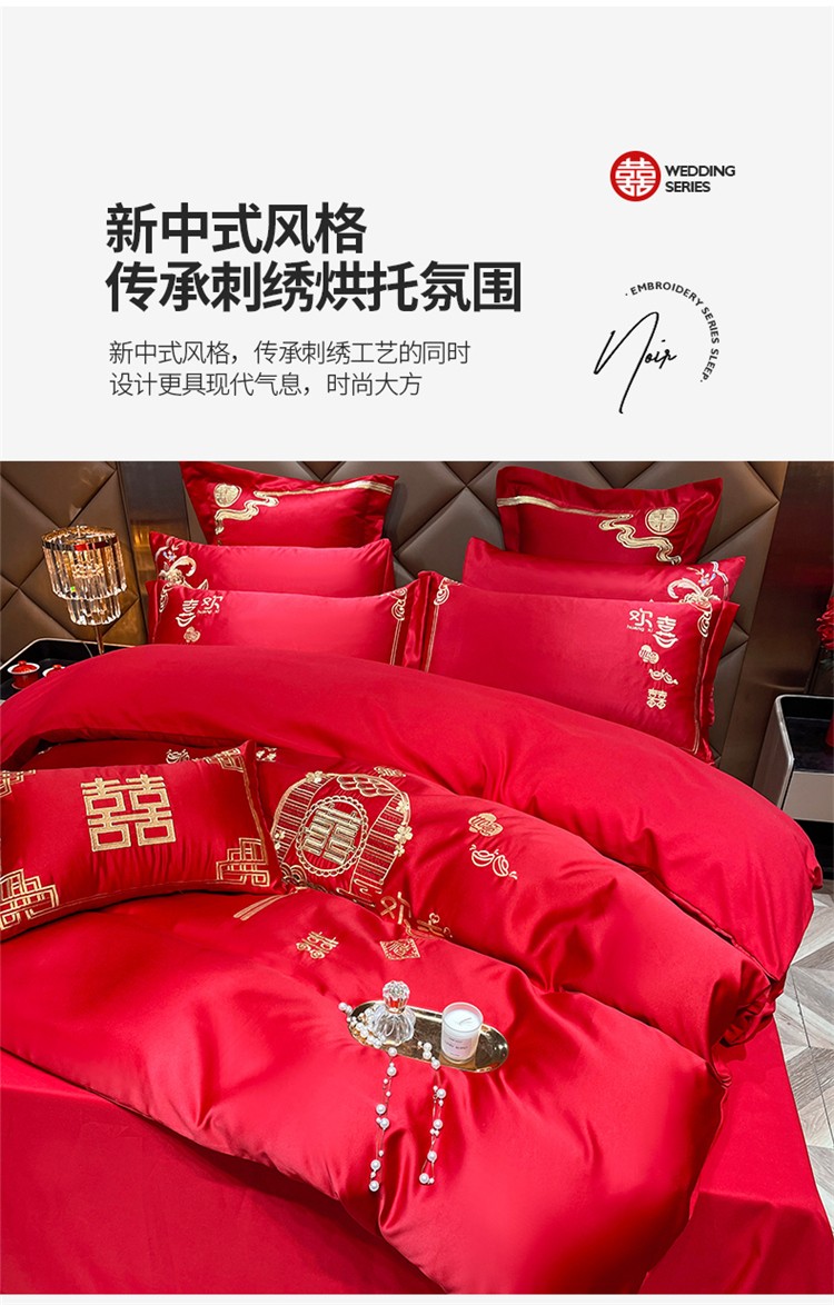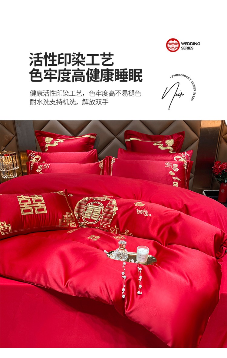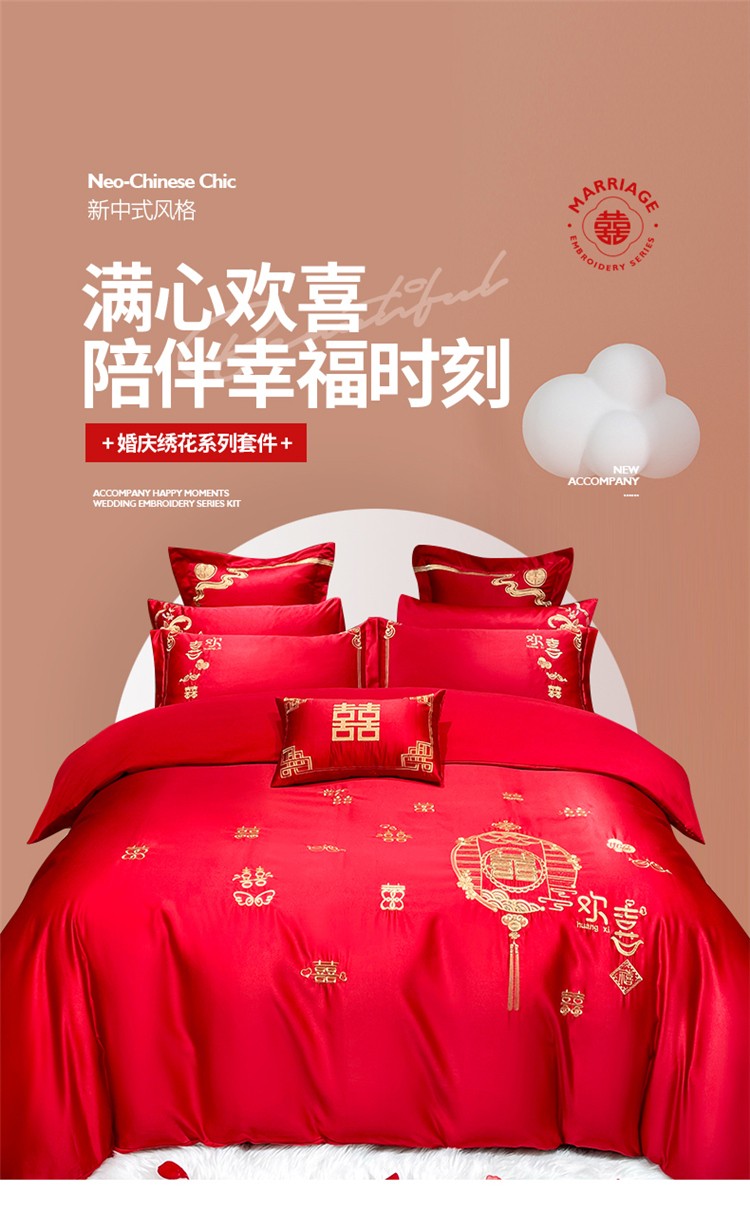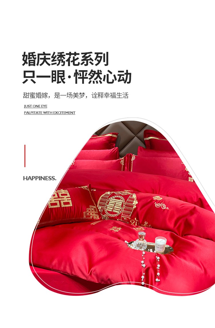 当前位置: 91家纺网 > 商品网购 > 床品套件 > 四件套 > 婚庆四件套 > 千禧 2024新款贡缎磨毛婚庆绣花多件套 满心欢喜