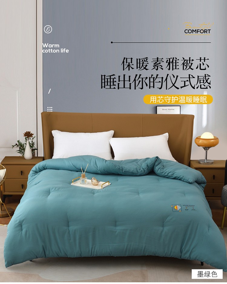 • 91家纺网 家纺一手货源 找家纺 德芙素色简约日式水洗棉被芯整张仿丝棉春秋被保暖冬被包质检 墨绿色Blackish Green