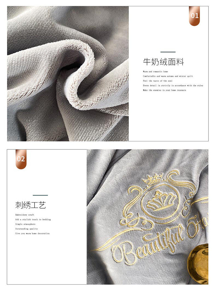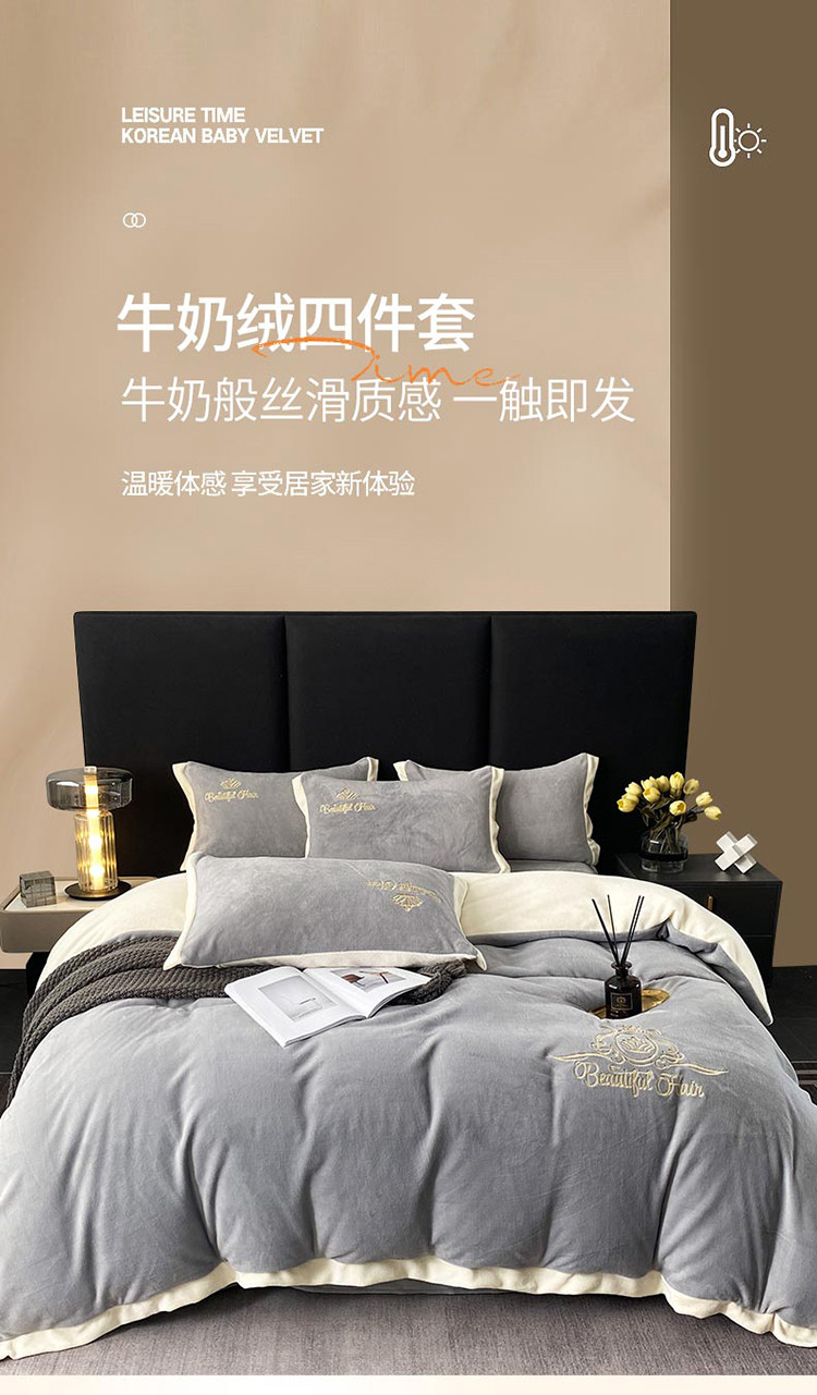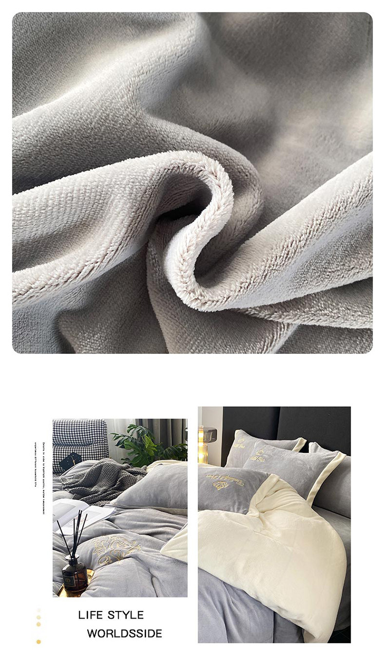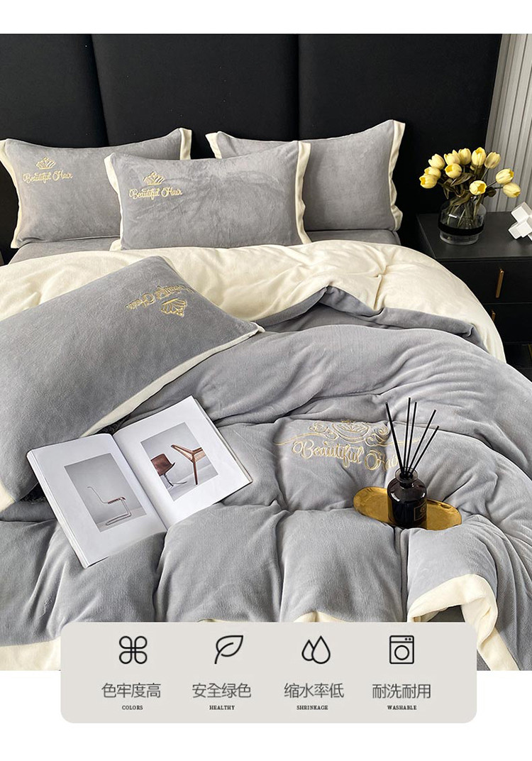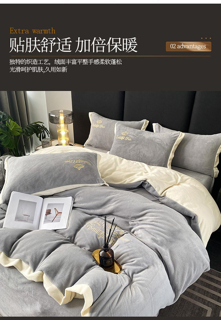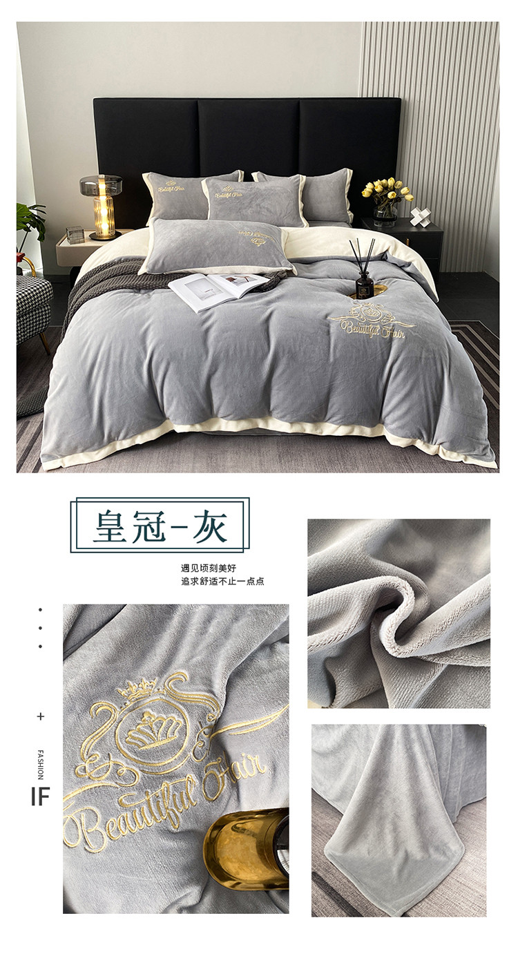 铠畅 2022年新款冬季爆款牛奶绒绒四件套 皇冠-灰