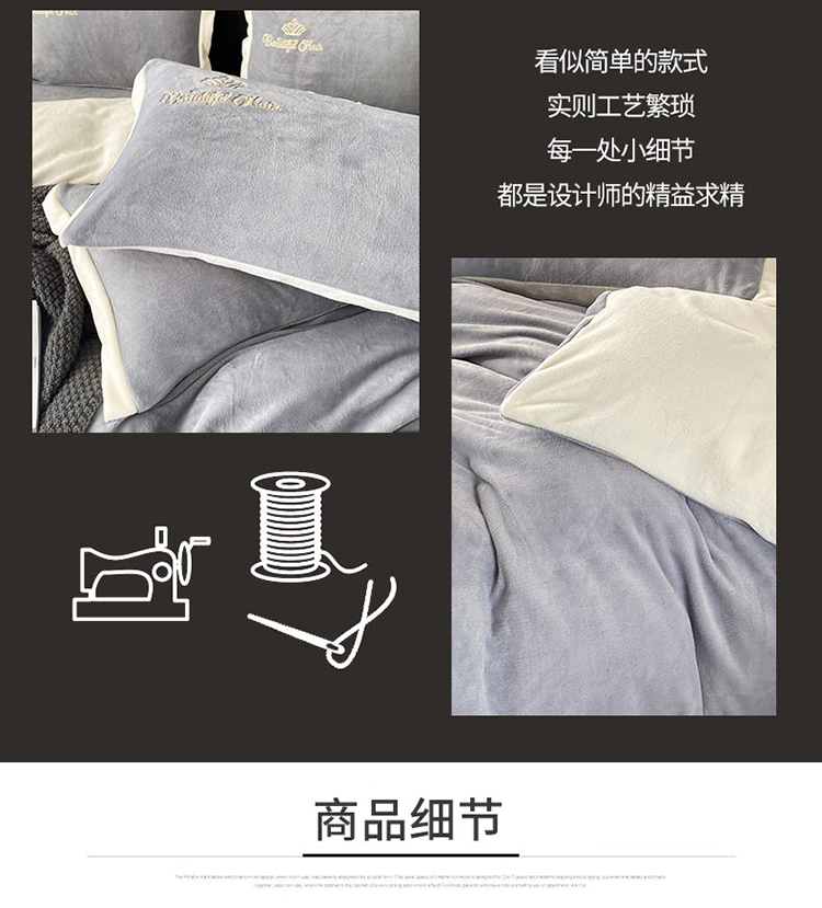 商品名称:铠畅 2022年新款冬季爆款牛奶绒绒四件套 皇冠-灰