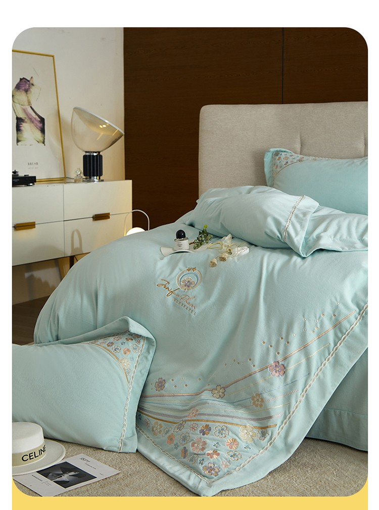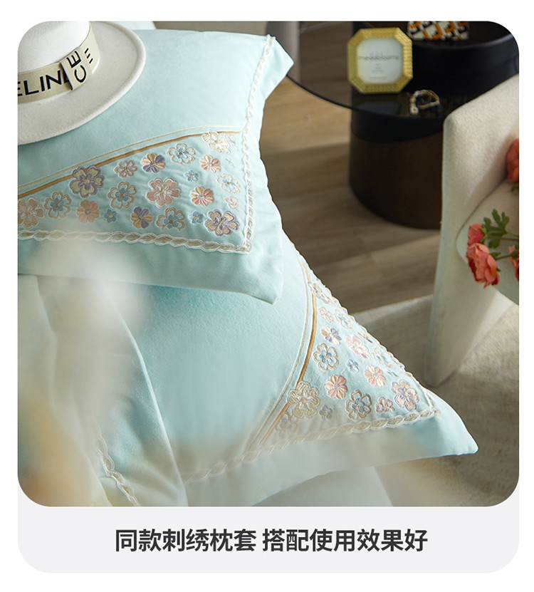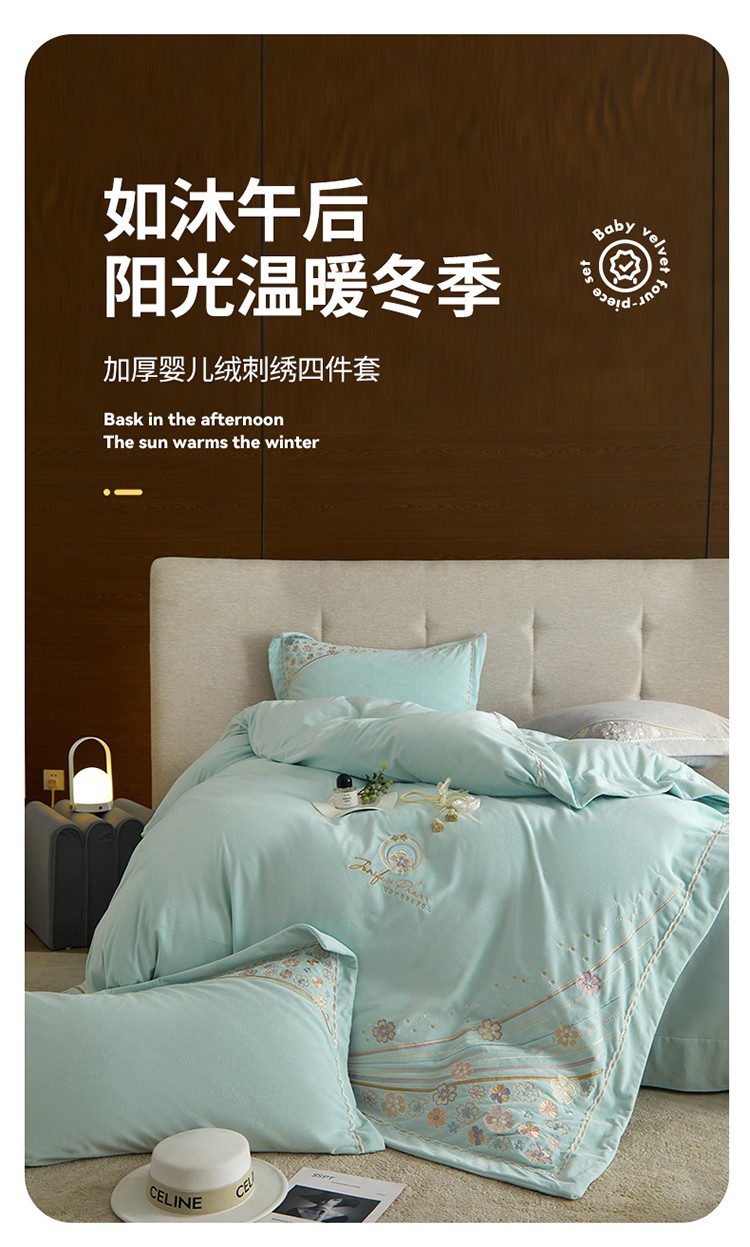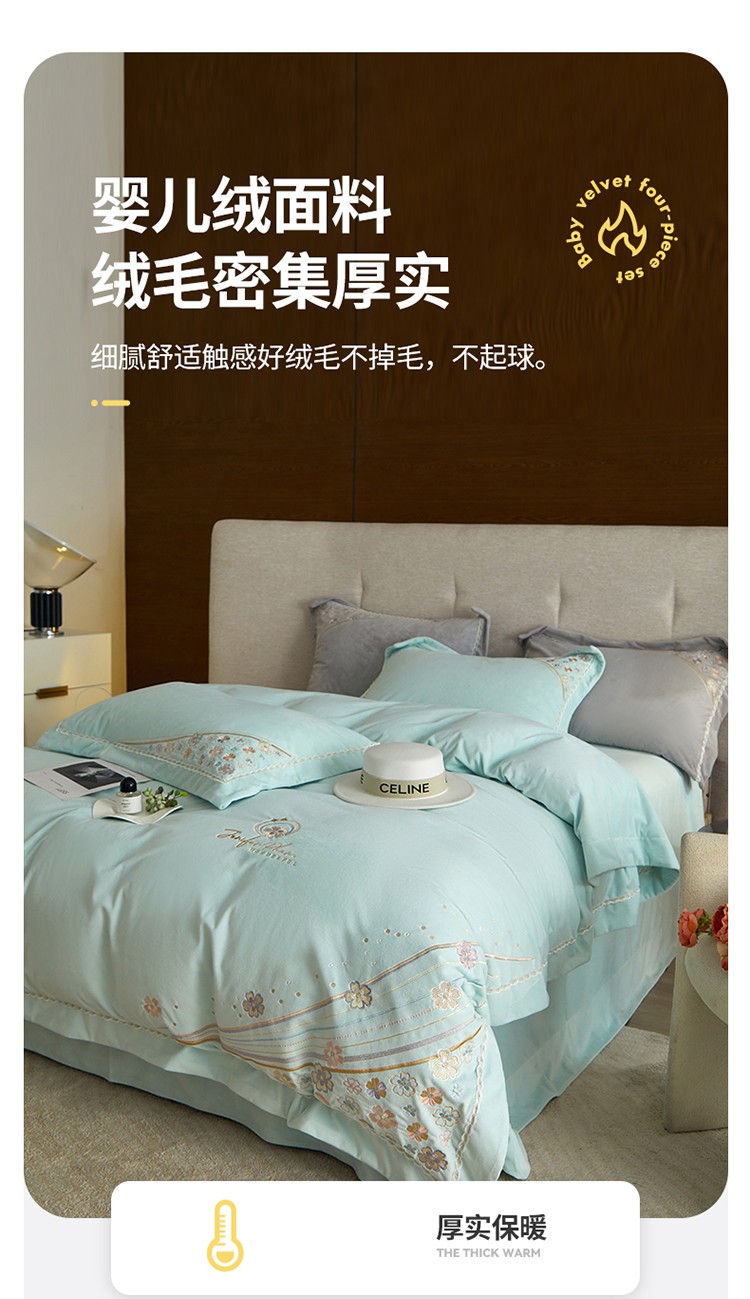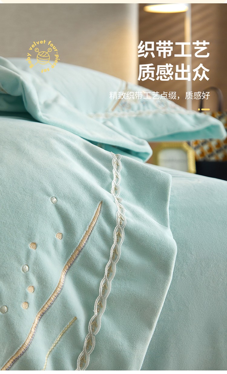 名品优仓2022新款刺绣婴儿绒230克四件套-温柔时光柔嫩绿