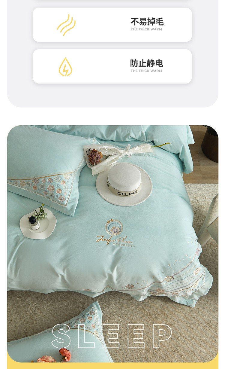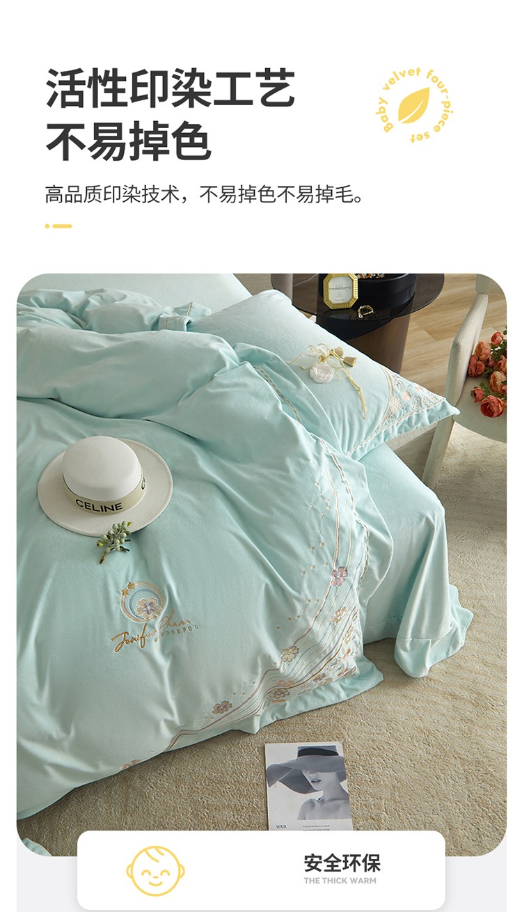 商品名称:名品优仓2022新款刺绣婴儿绒230克四件套-温柔时光柔嫩绿