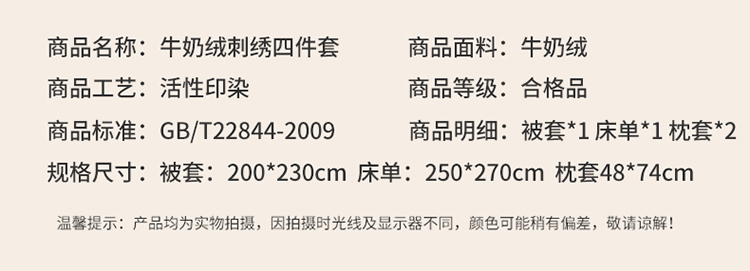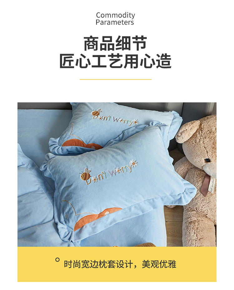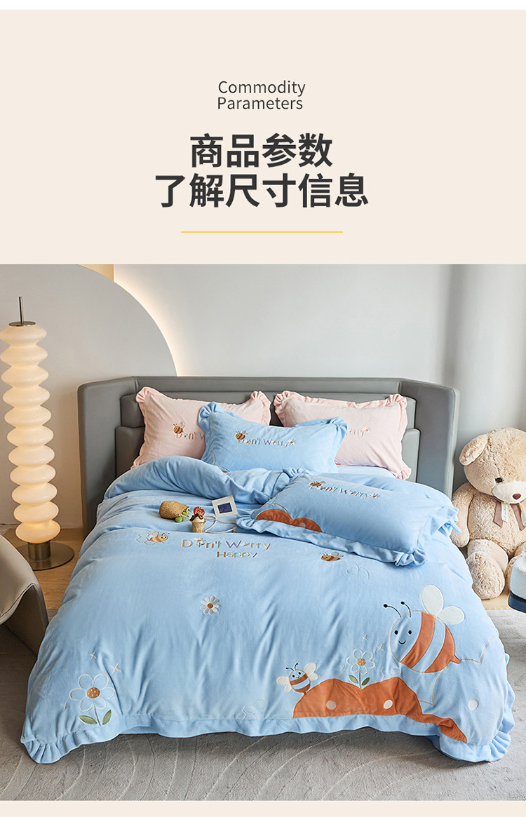 商品名称:(总)名品优仓 2022新款230g牛奶绒刺绣四件套-小蜜蜂