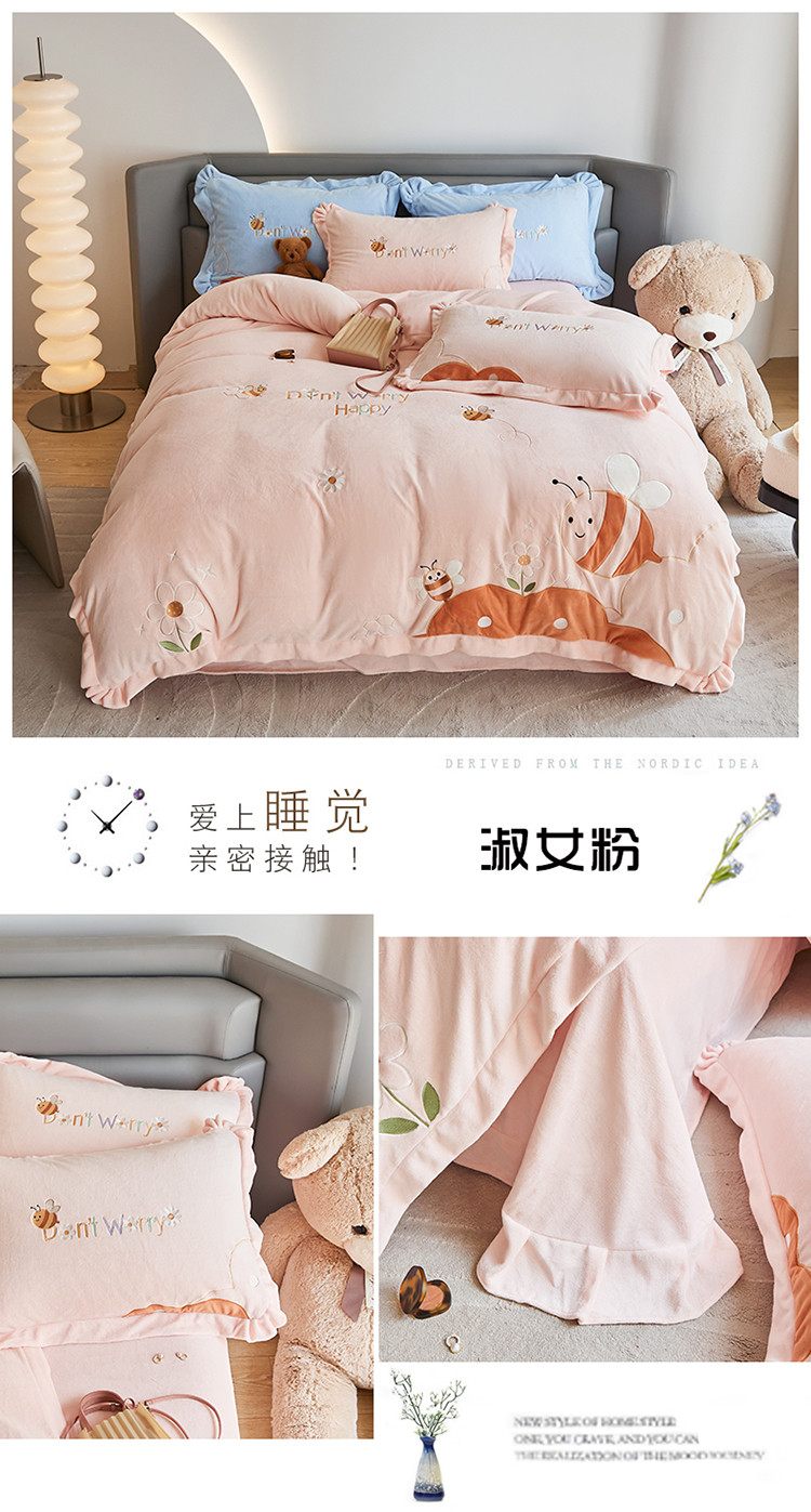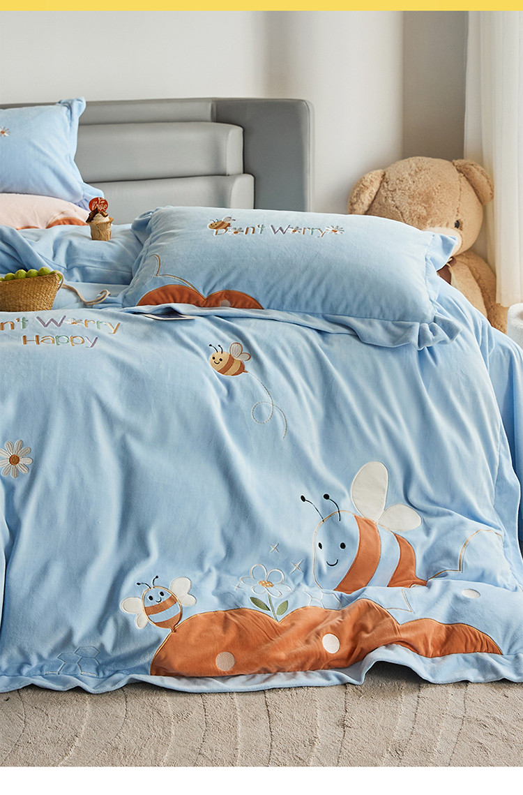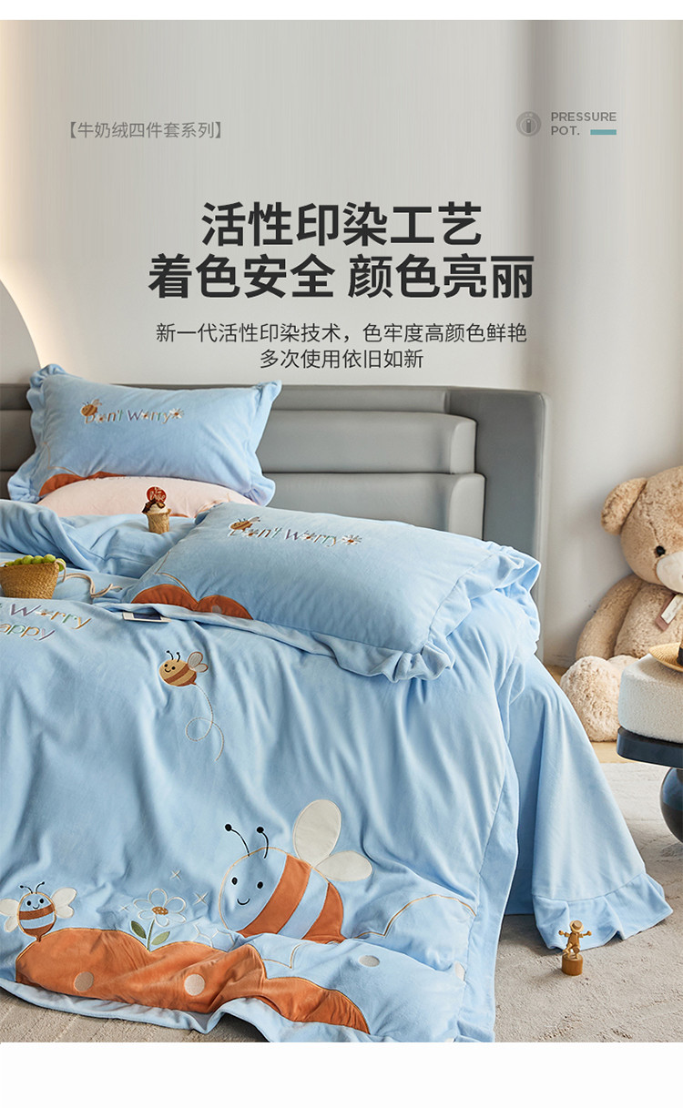 (总)名品优仓 2022新款230g牛奶绒刺绣四件套-小蜜蜂
