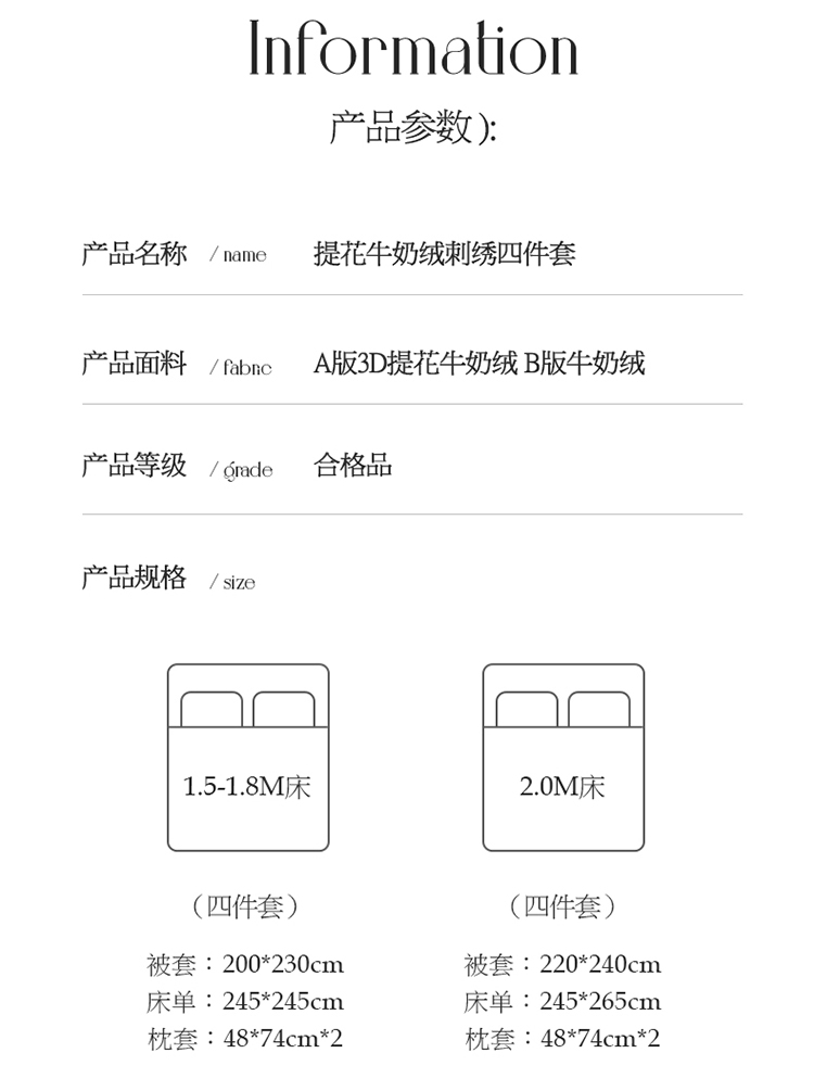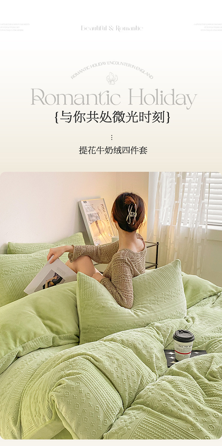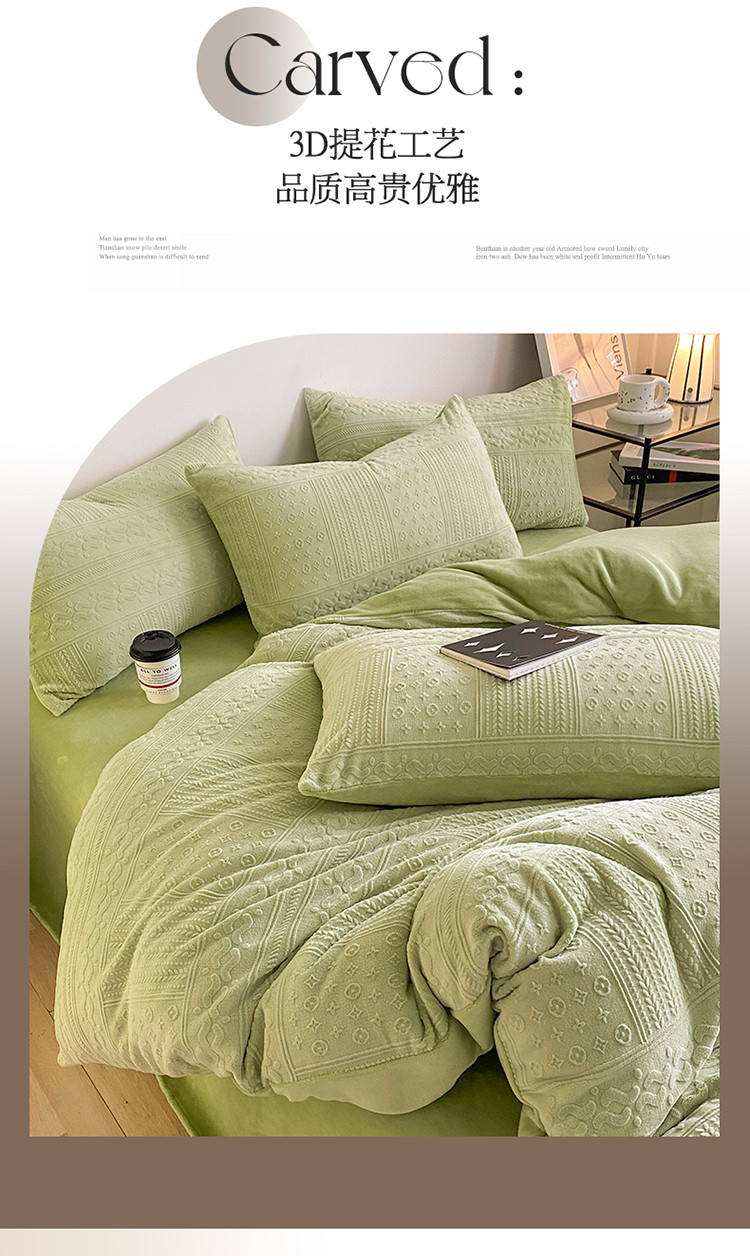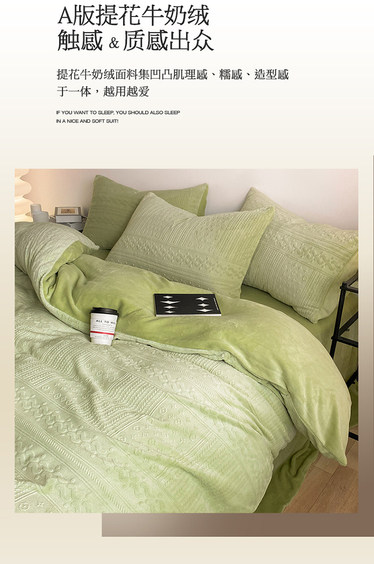 当前位置: 91家纺网 > 商品网购 > 床品套件 > 四件套 > 牛奶绒四件套 > 总小久久2023欧式烂花A类3D雕花纯色牛奶绒法莱绒四件套