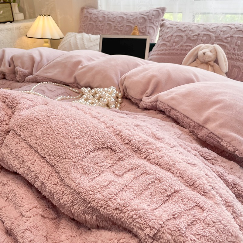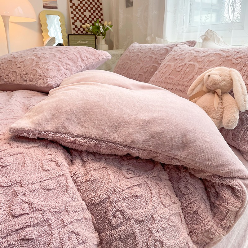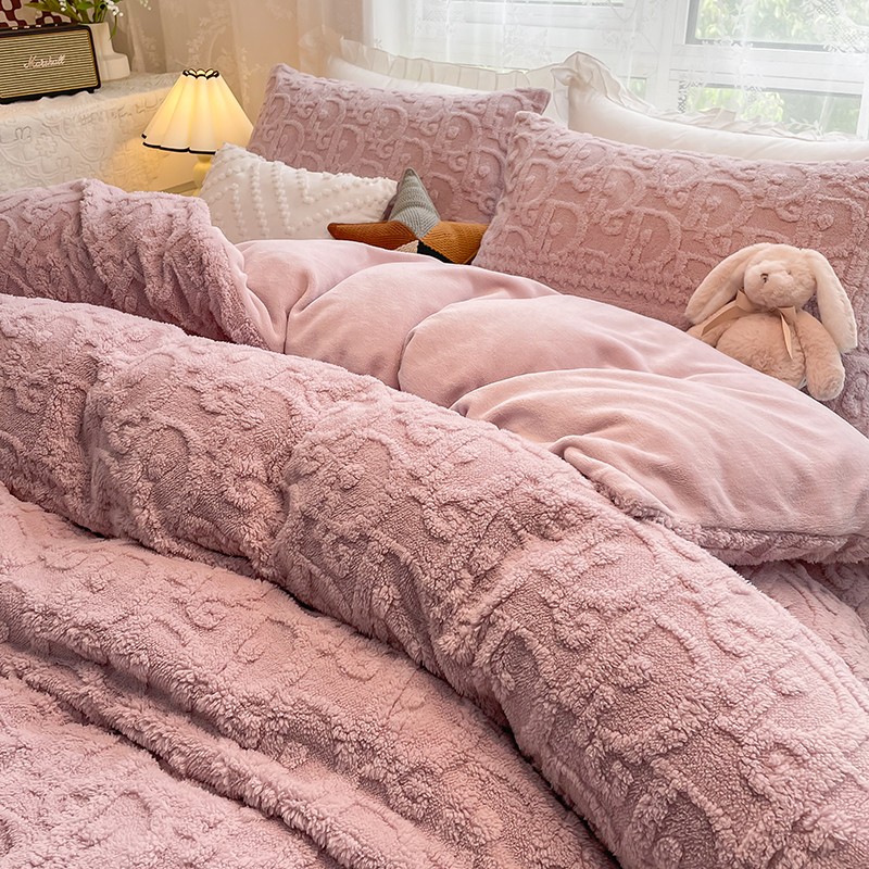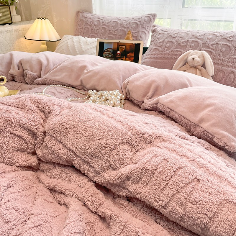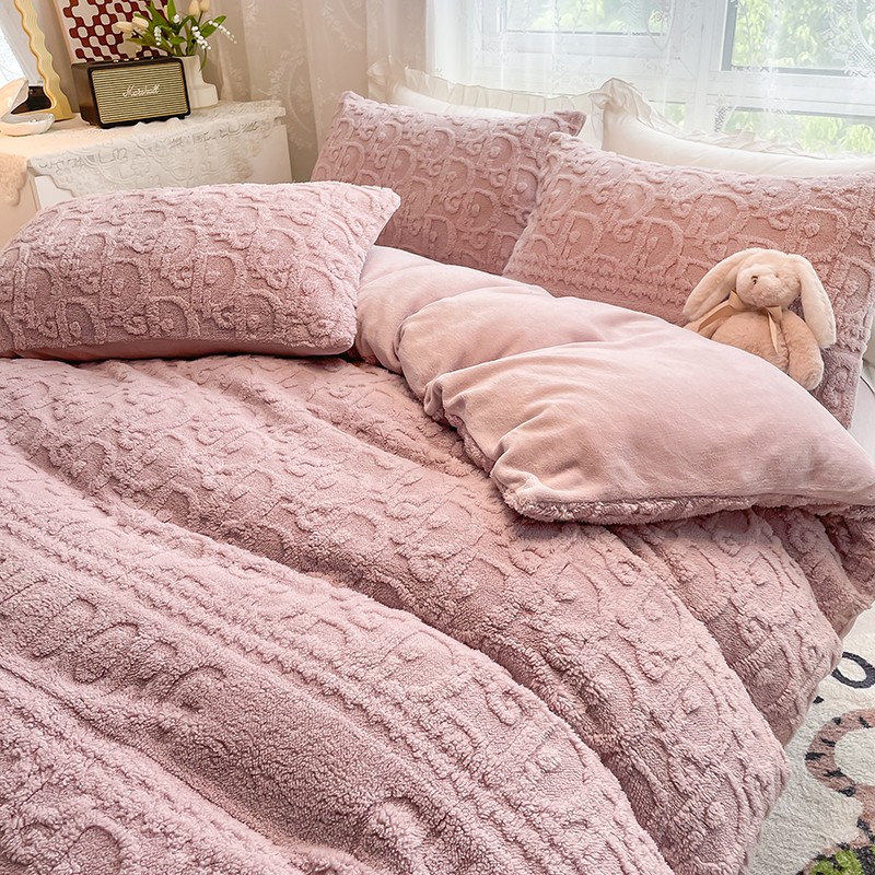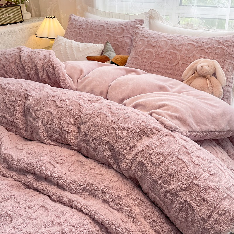 商品名称:HL原创 2022新款色织提花牛奶绒四件套 提花绒-香芋色