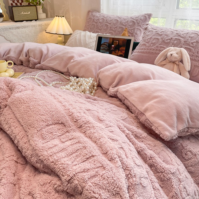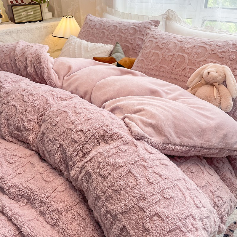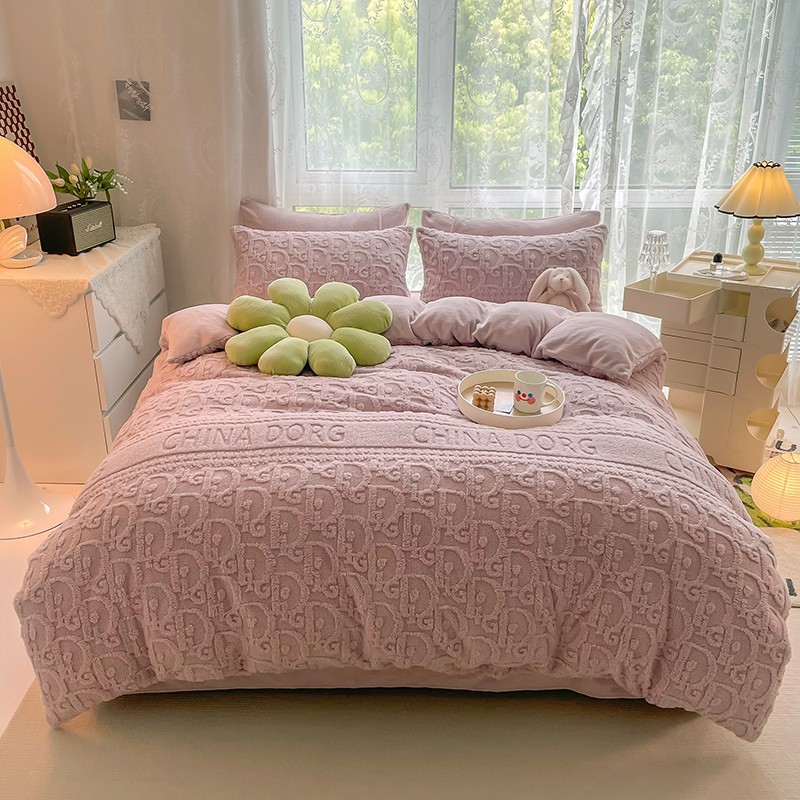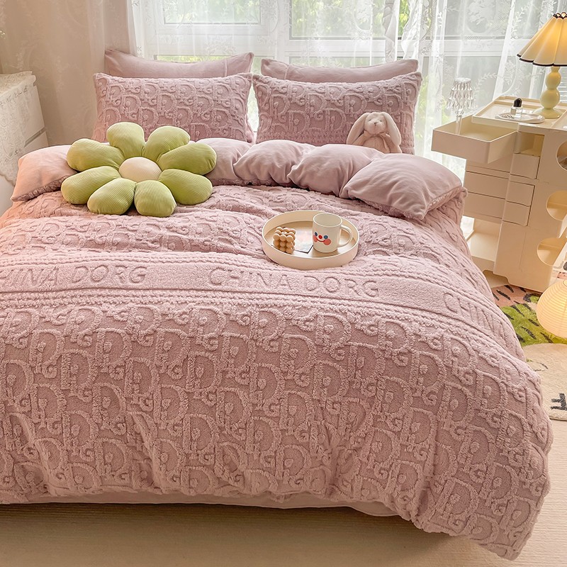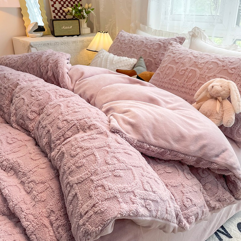 HL原创 2022新款色织提花牛奶绒四件套 提花绒-香芋色