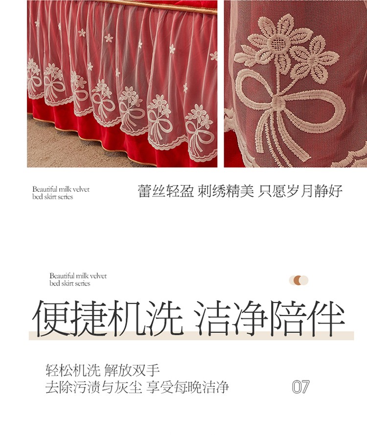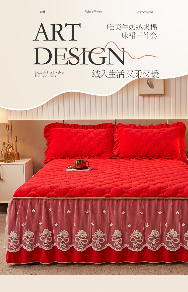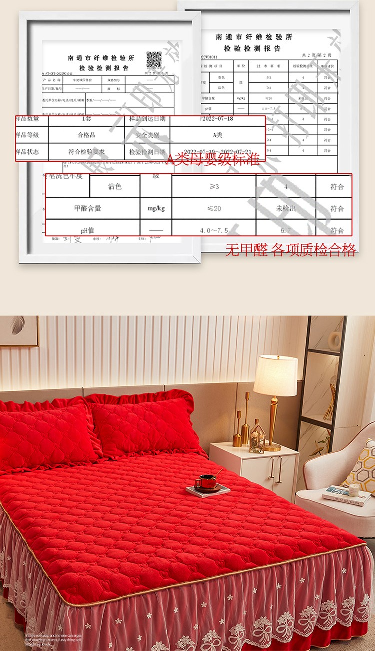 (总)宜凡家纺 2025新款婴儿绒压花全夹棉床裙四件套,韵雅-中国红,韵雅-黑天鹅