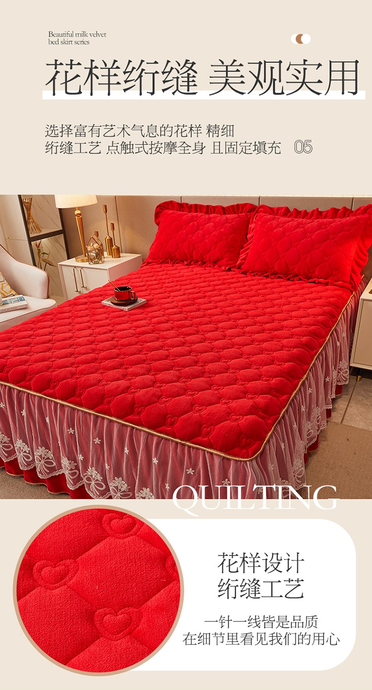 商品名称:宜凡2022新款纯色夹棉床裙 嫣红