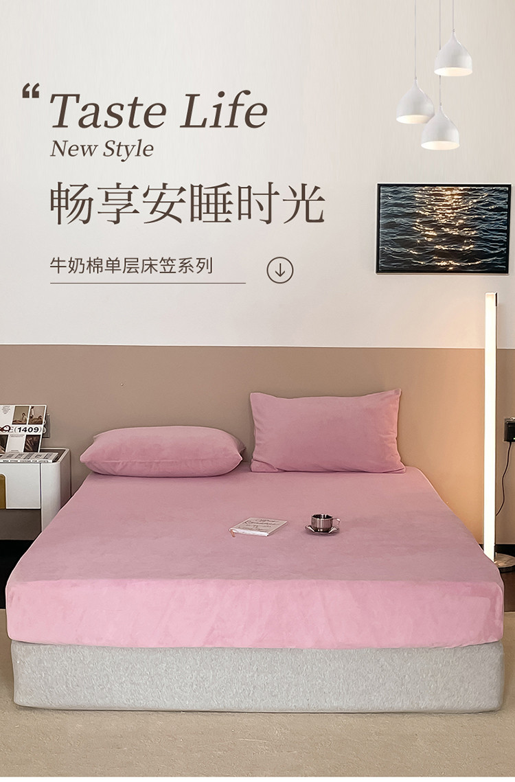 商品名称:法芙娜 A类牛奶棉单层床笠 粉