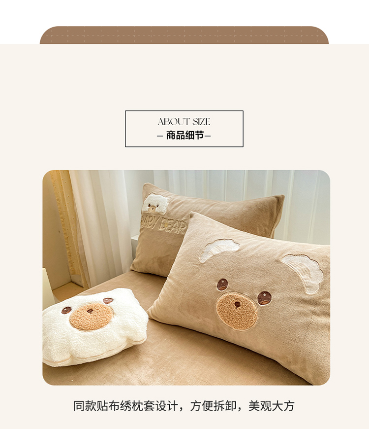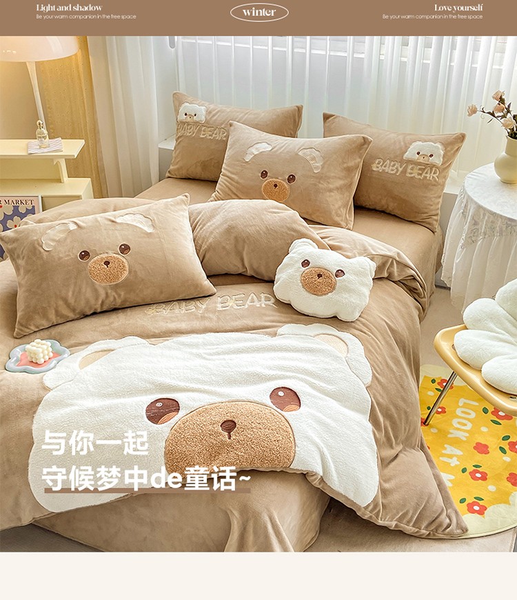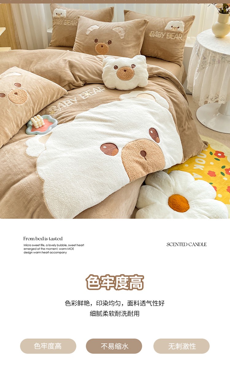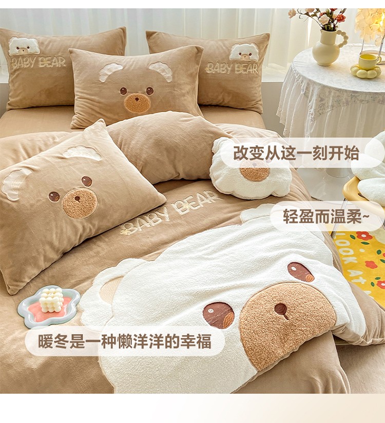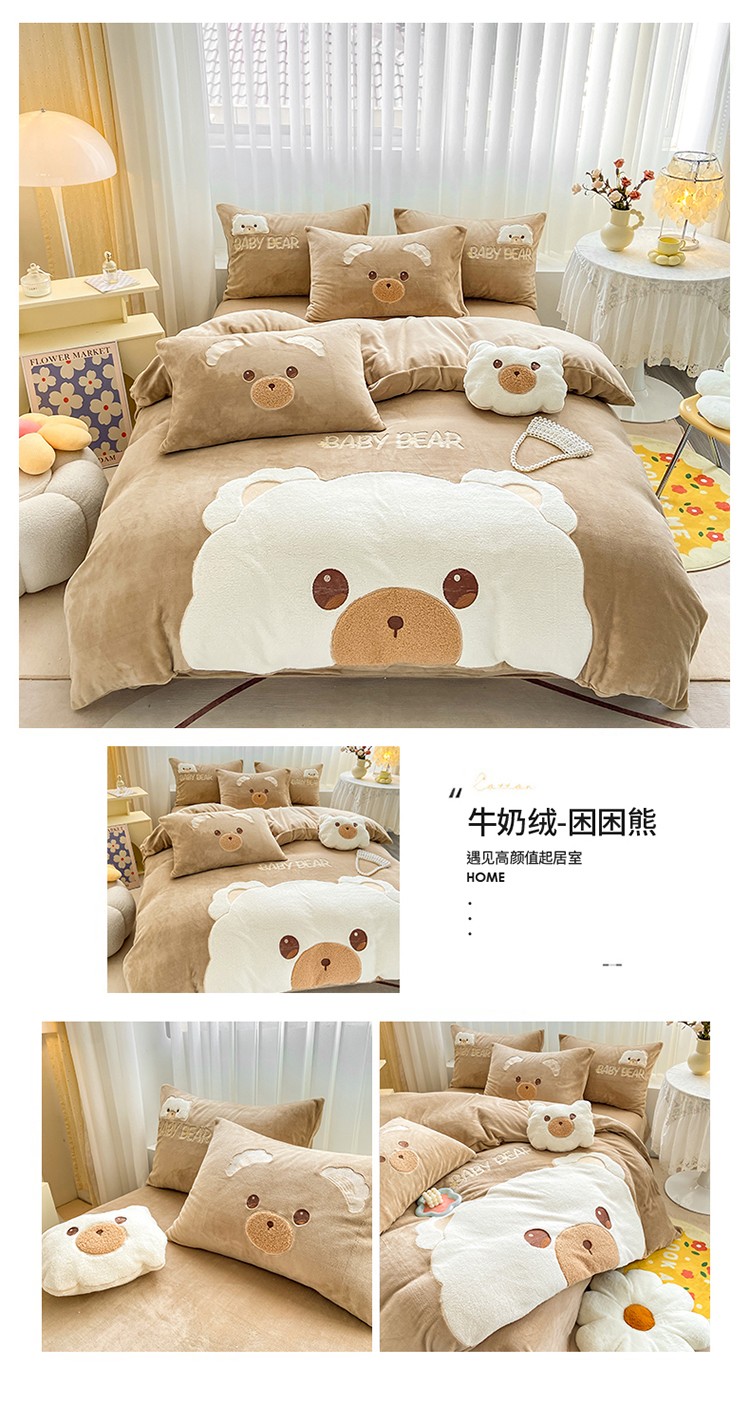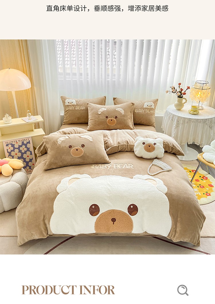 商品名称:涵宸2022新款加厚牛奶绒贴布绣系列四件套 牛奶绒-困困熊