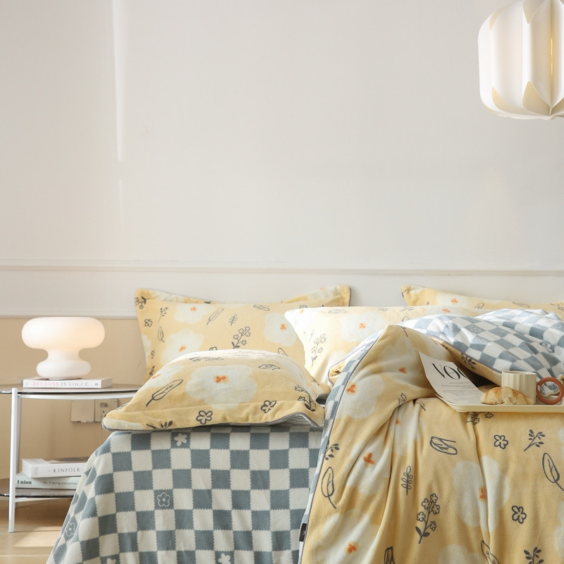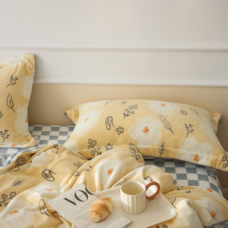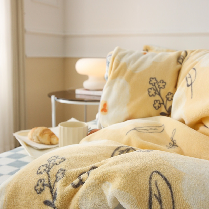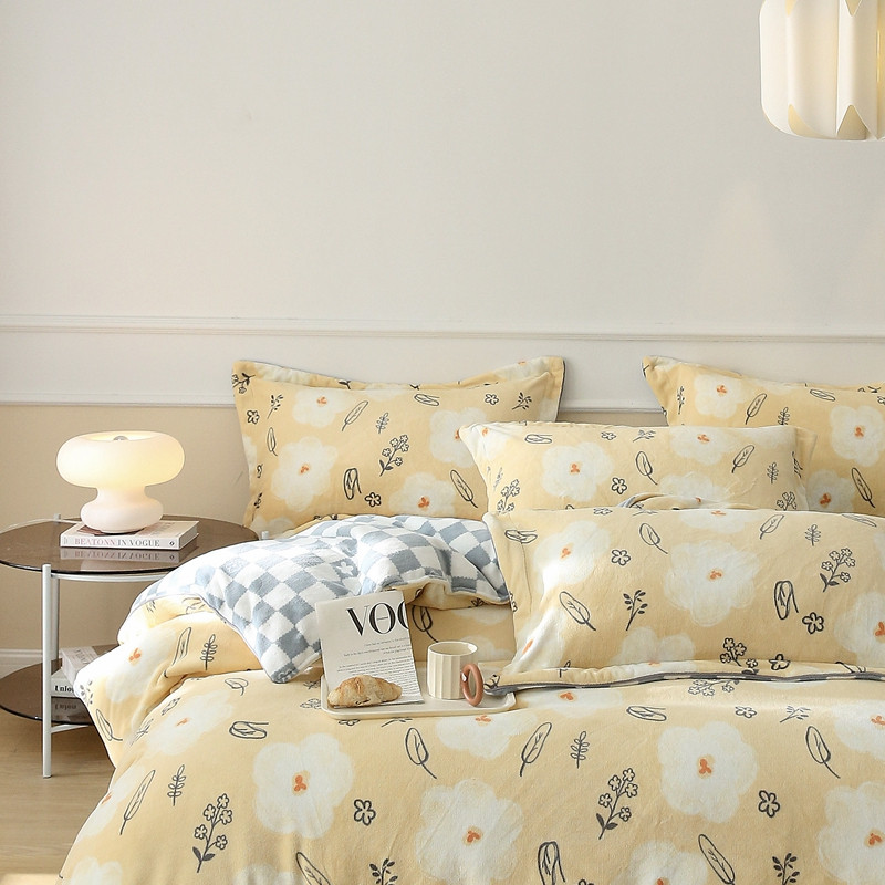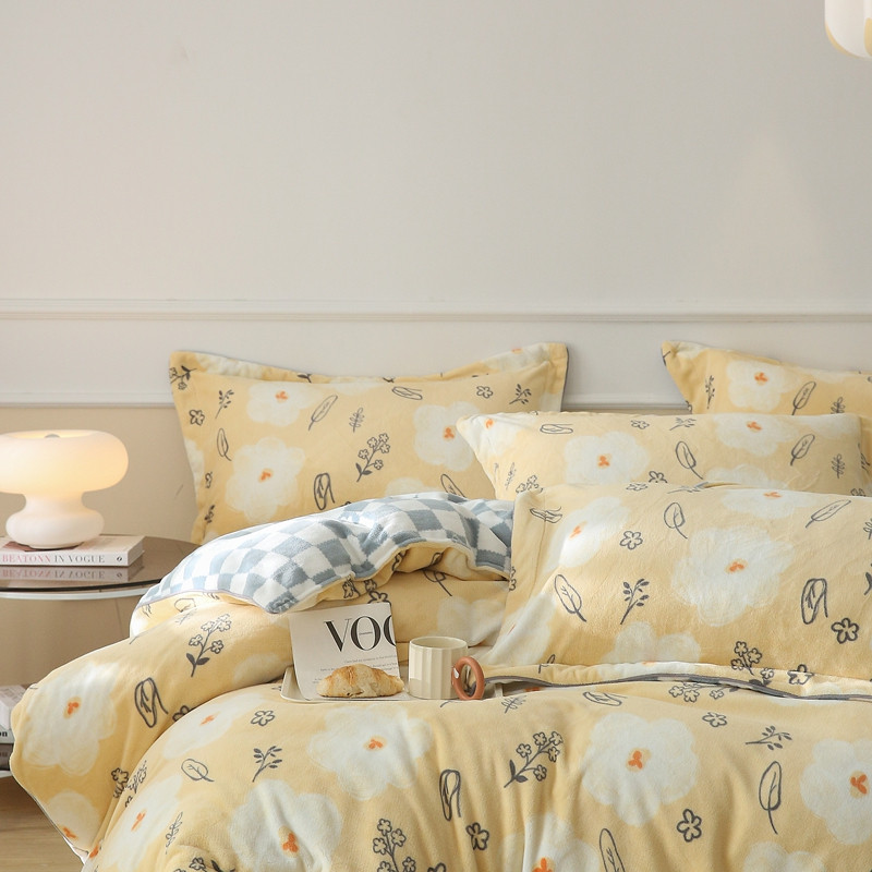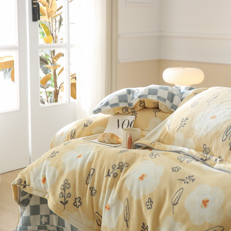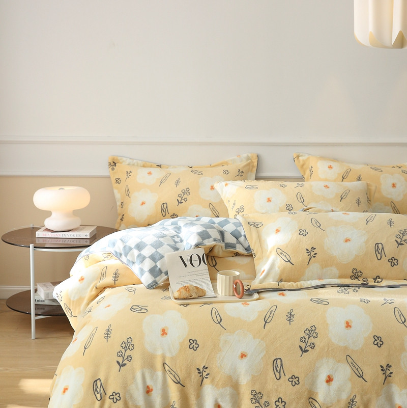 橘滋 2022新款秋冬高端绒进口牛奶绒臻棉绒保暖印花四件套 鸡蛋花