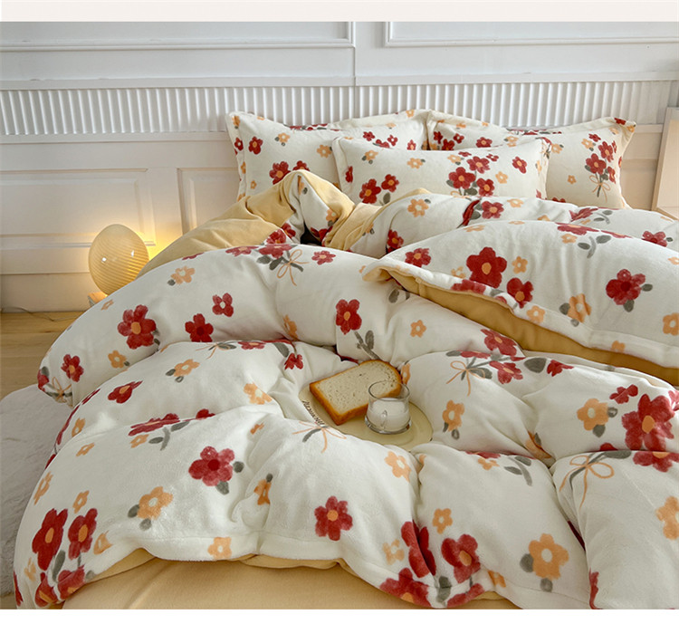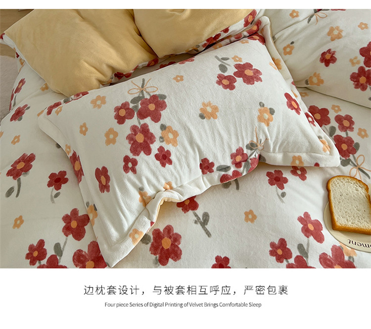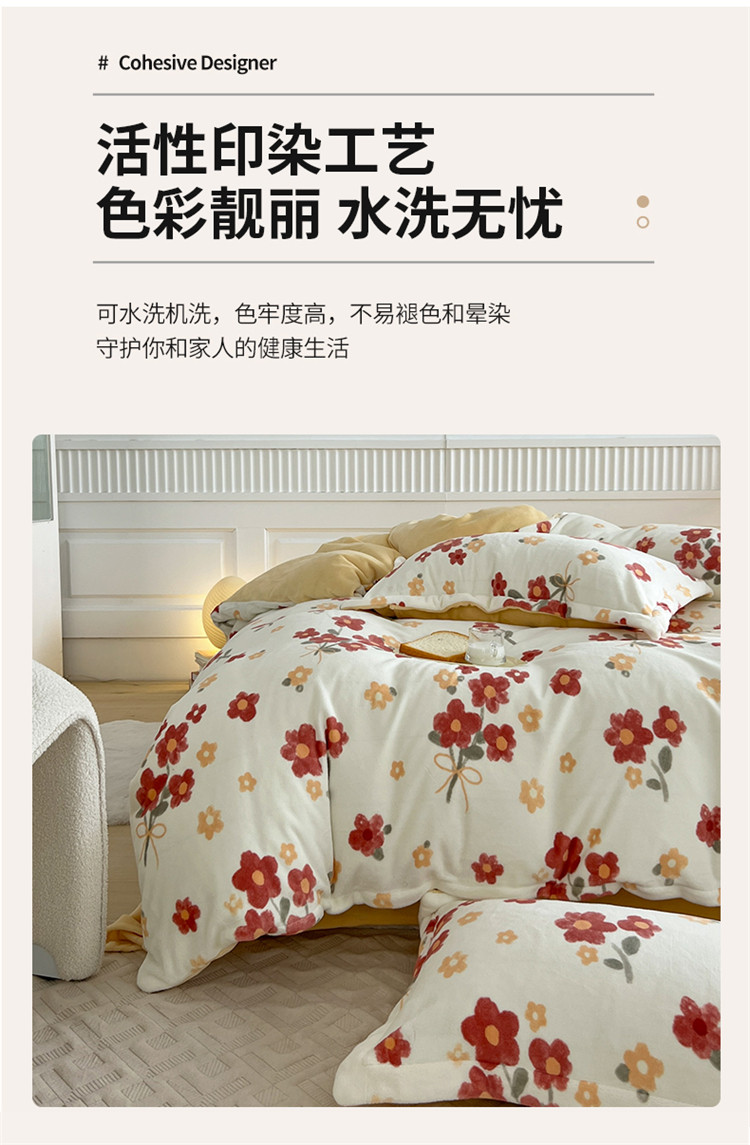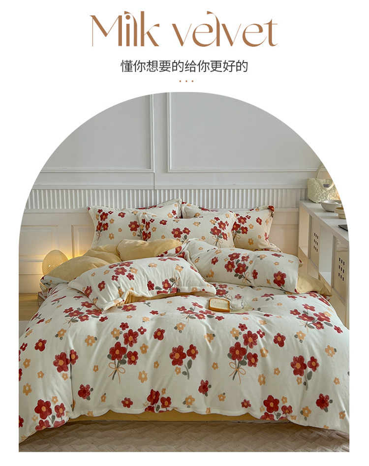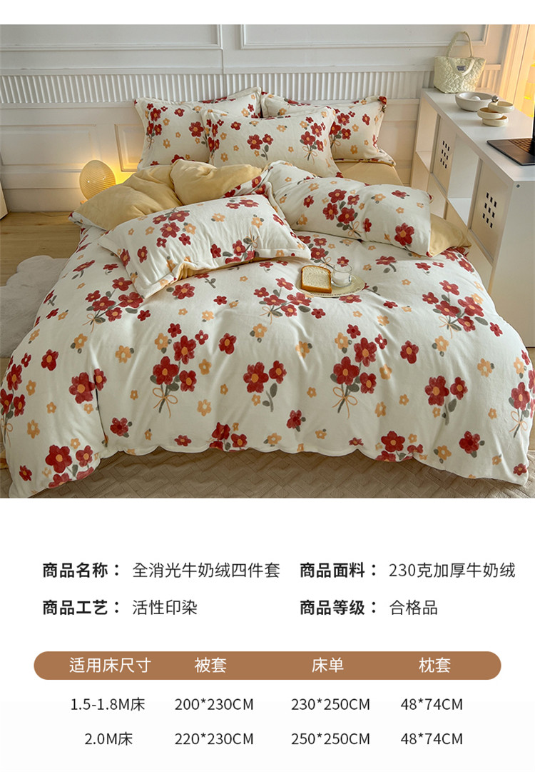 商品名称:木堇家居 2022新款全消光牛奶绒四件套 西西里红