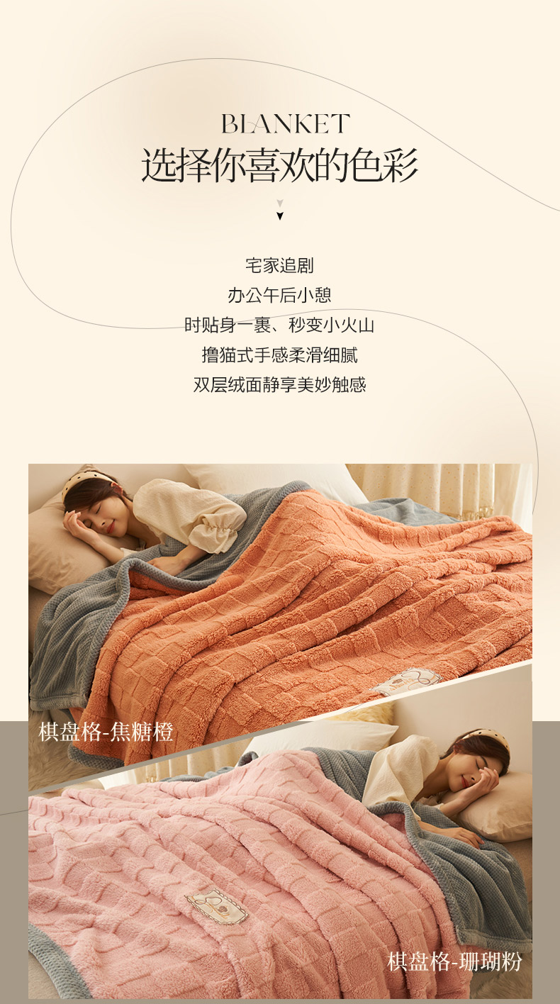 当前位置: 91家纺网 > 商品网购 > 毛毯休闲毯绒毯 > 毛毯 > 21度C 2023新款塔复绒+贝贝绒双层复合毯 棋盘格-焦糖橙