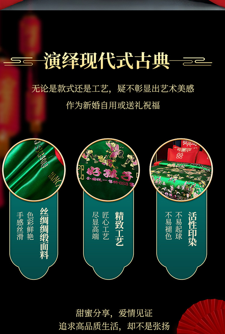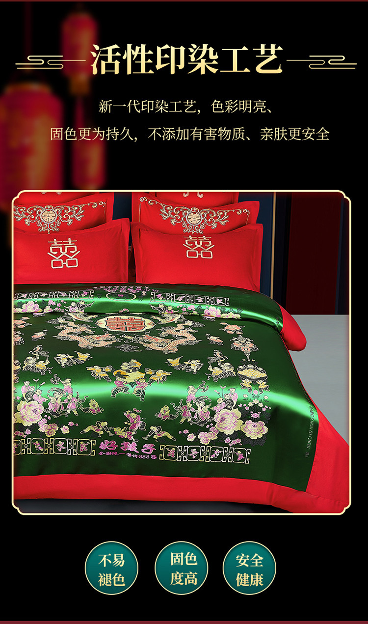 商品名称:玉雅家纺 2025新款婚庆绸缎被面结婚喜被龙凤百子单被套 龙凤百子-绿