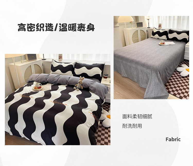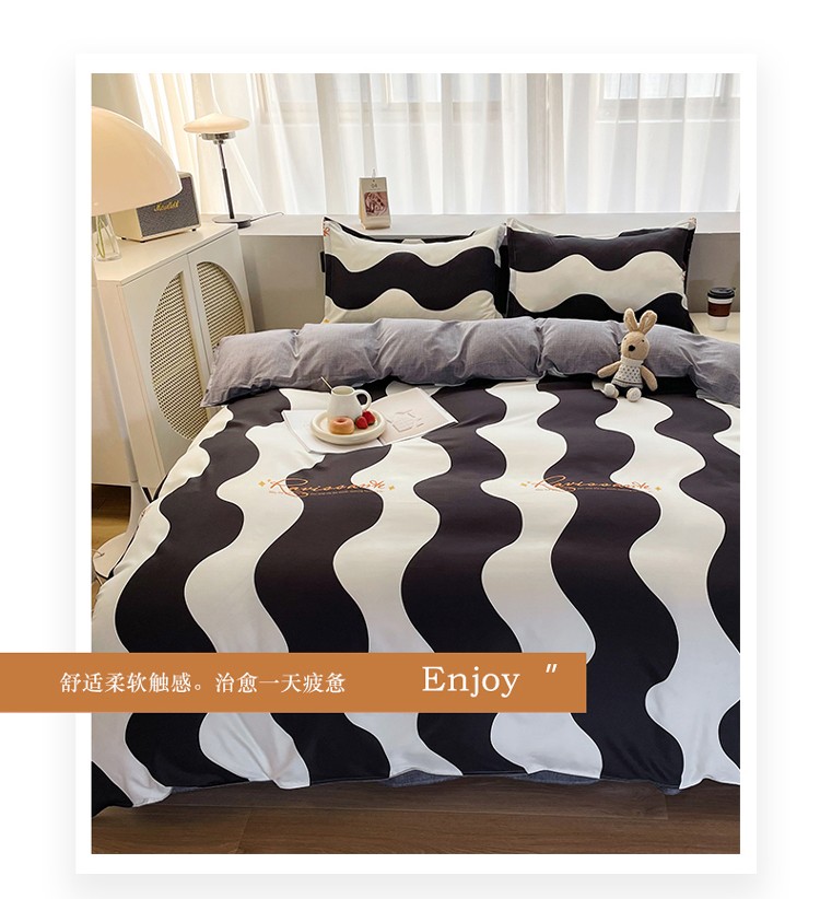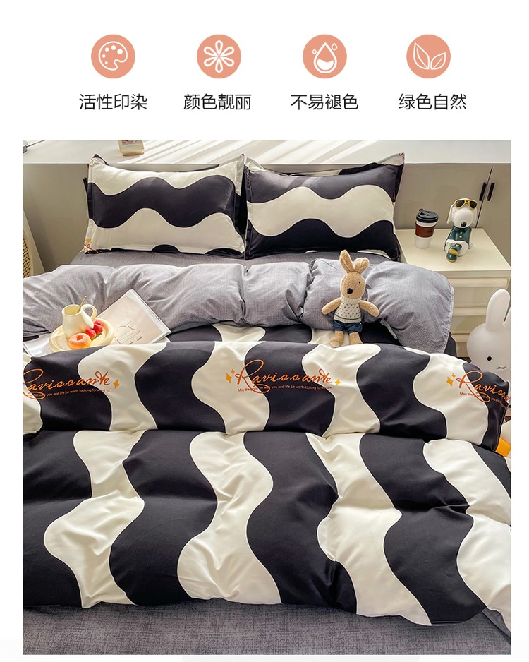 宏源2022年12月新款芦荟棉亲肤印花四件套 时尚波纹