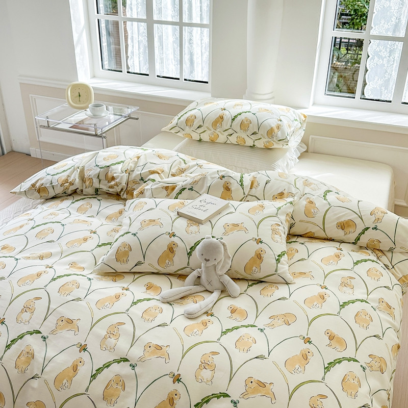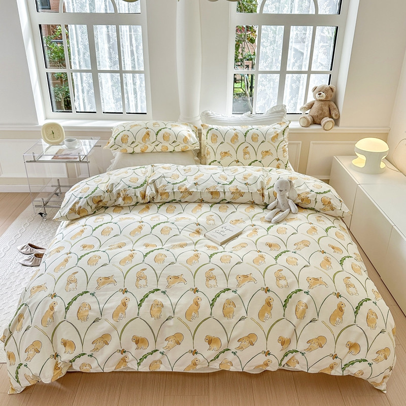 柚子 2023新款13372精梳棉浪漫系列四件套 麦穗兔
