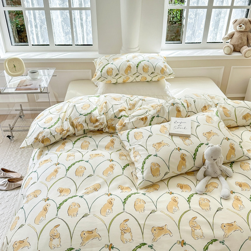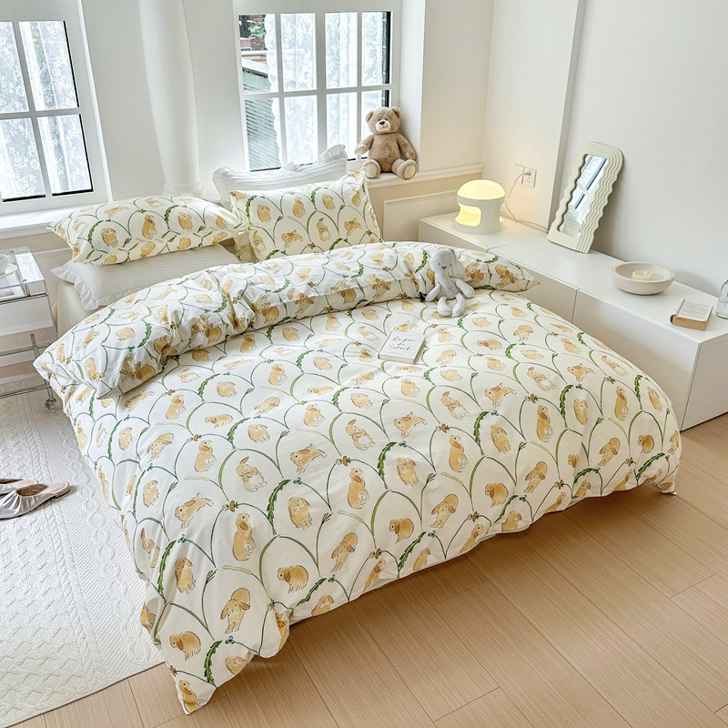 商品名称:柚子 2023新款13372精梳棉浪漫系列四件套 麦穗兔
