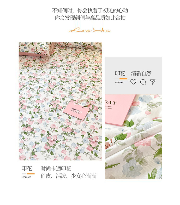商品名称:2023新款全棉印花小清新系列-单床单 优雅恋人