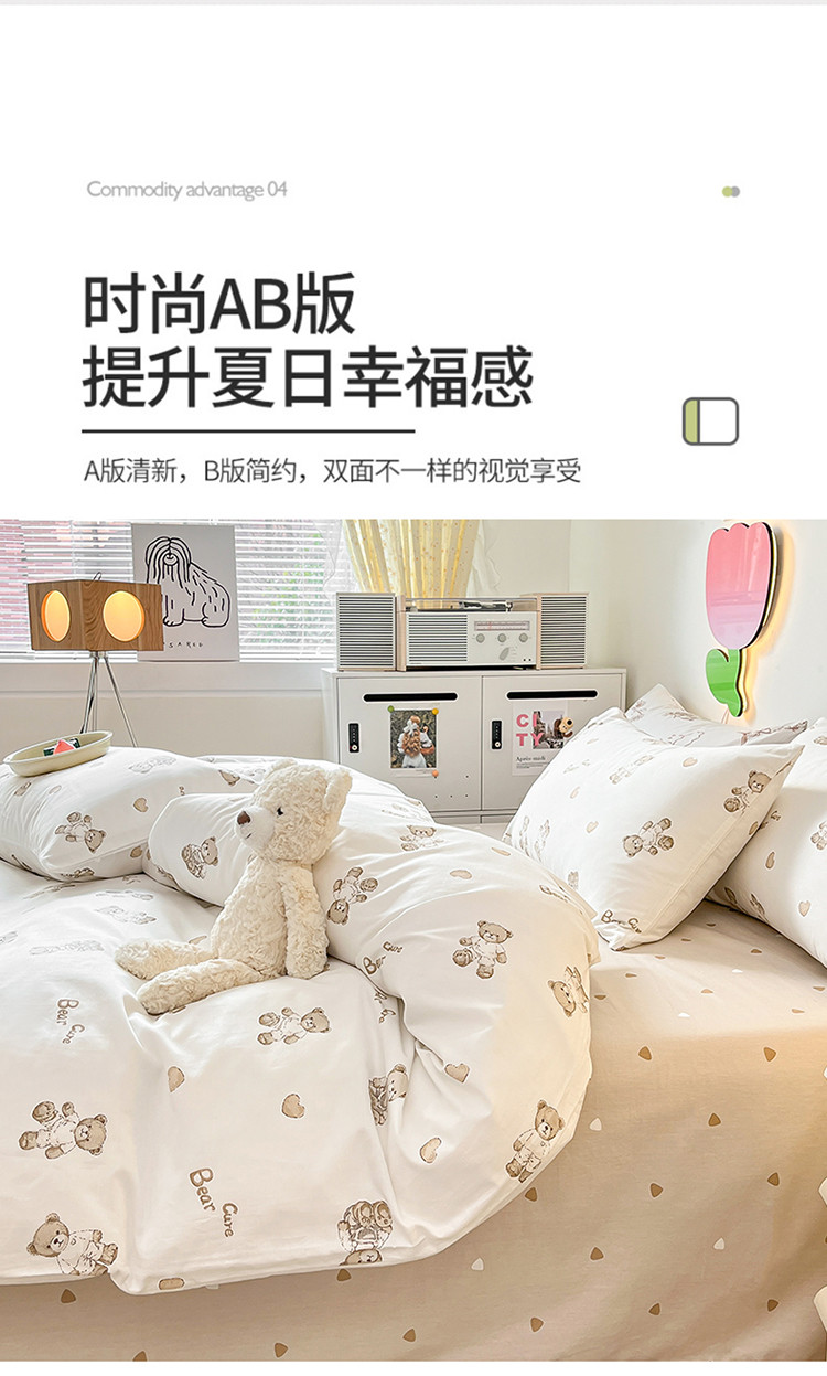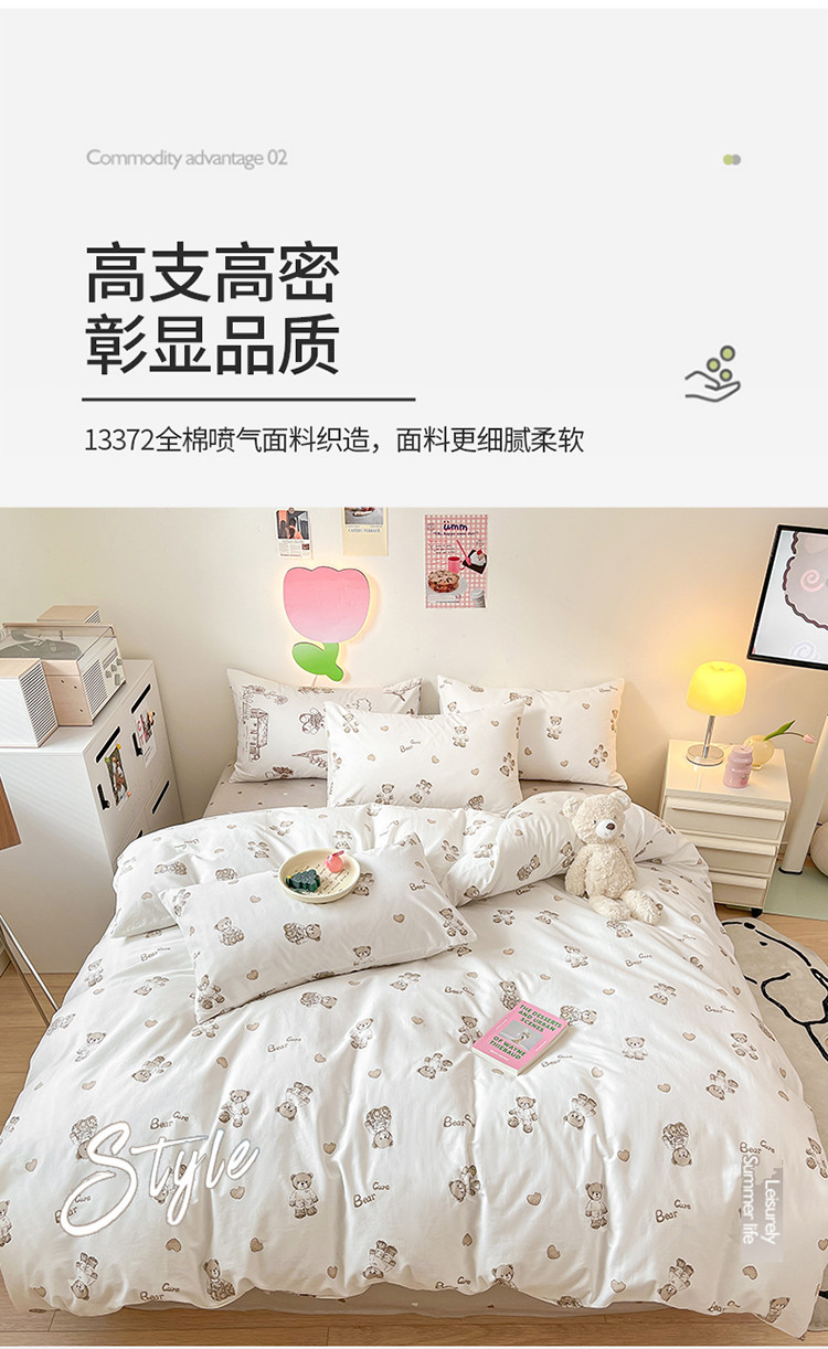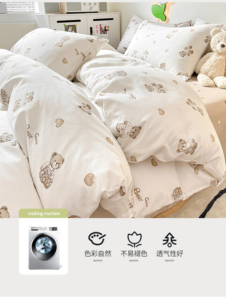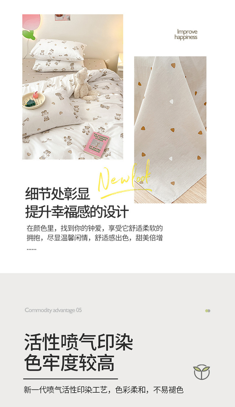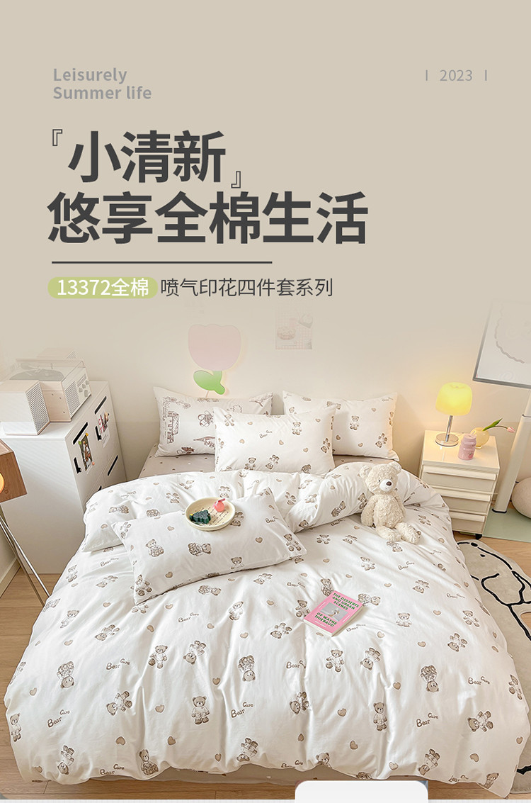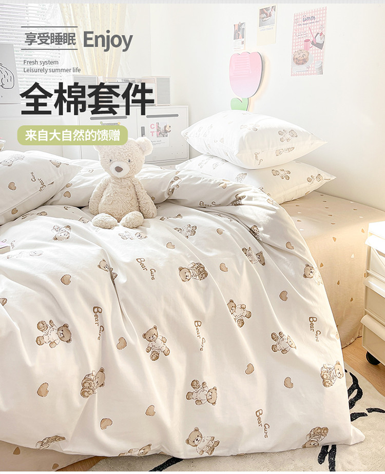 川悦生活 2023新款全棉印花四件套 韩系小熊
