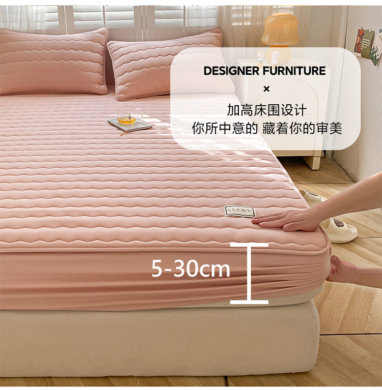 (总)芬晴家纺2023波浪方格夹棉床笠