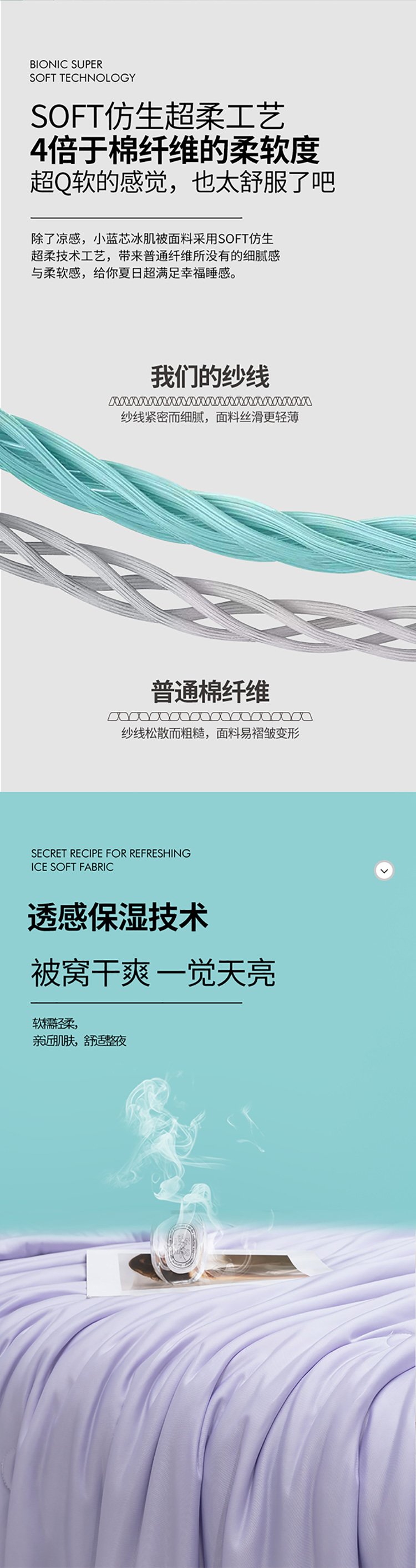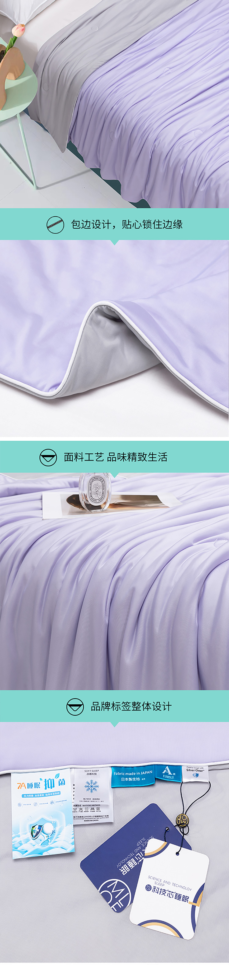 商品名称:若未家居 新款100%纯锦纶5A抗菌纤维填充凉皮冰激凌凉感夏被 星云紫