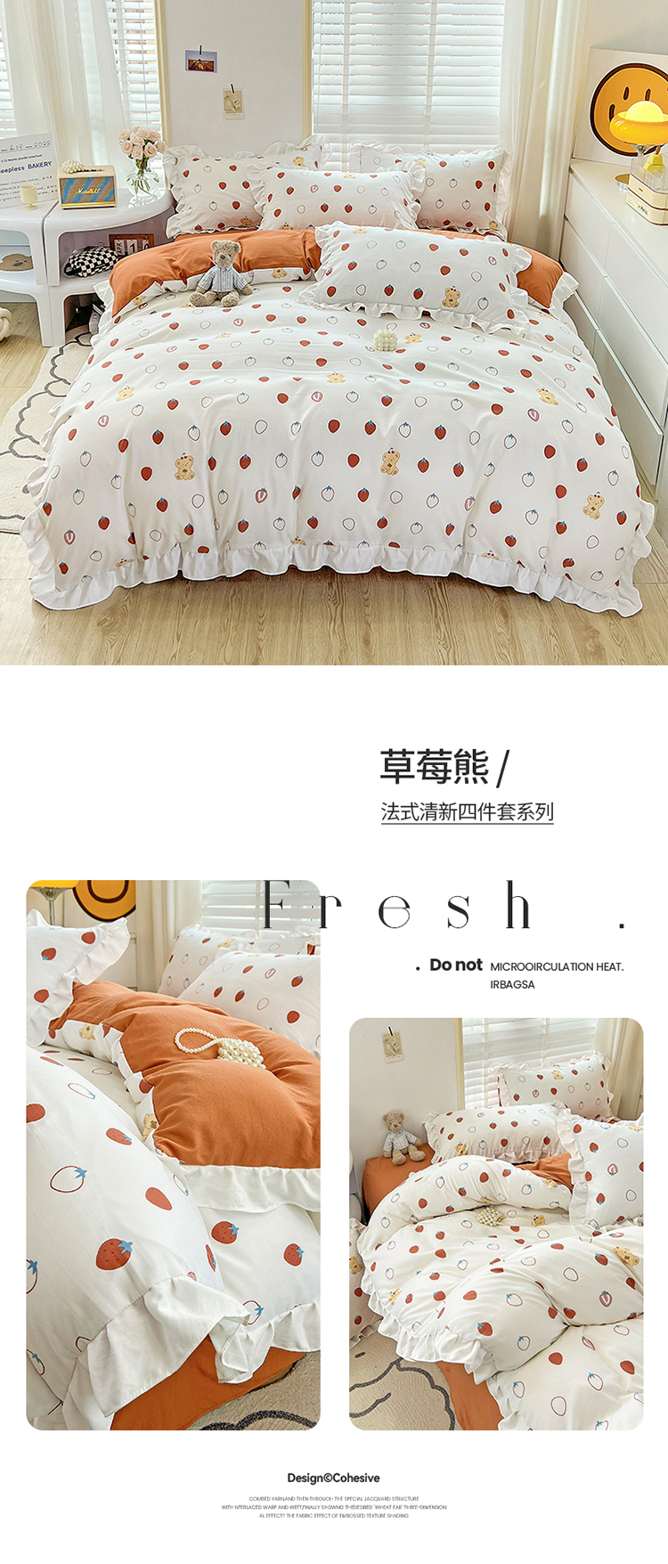 商品名称:澳梵 2023新款【怦然心动】系列-水洗棉麻双层纱四件套 草莓熊