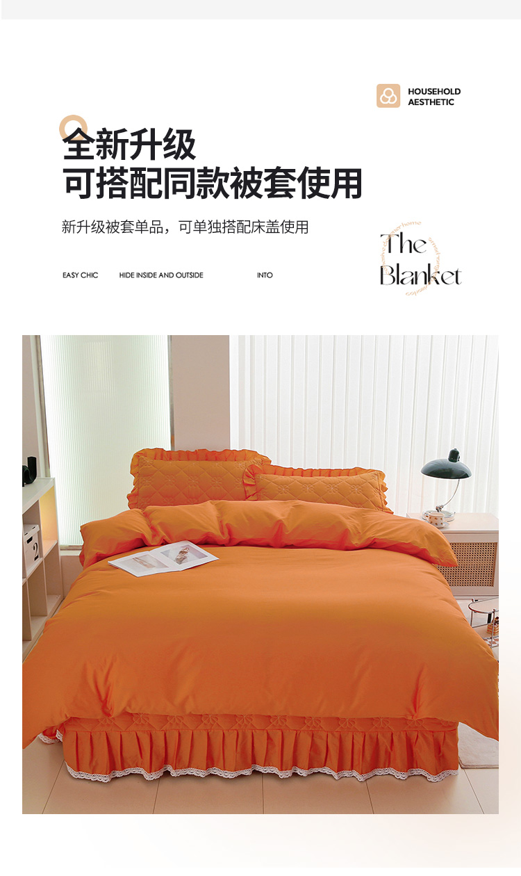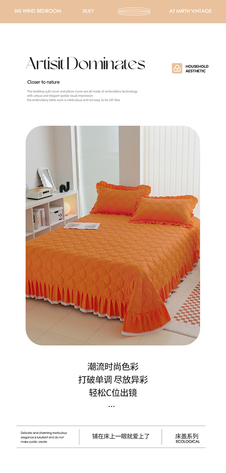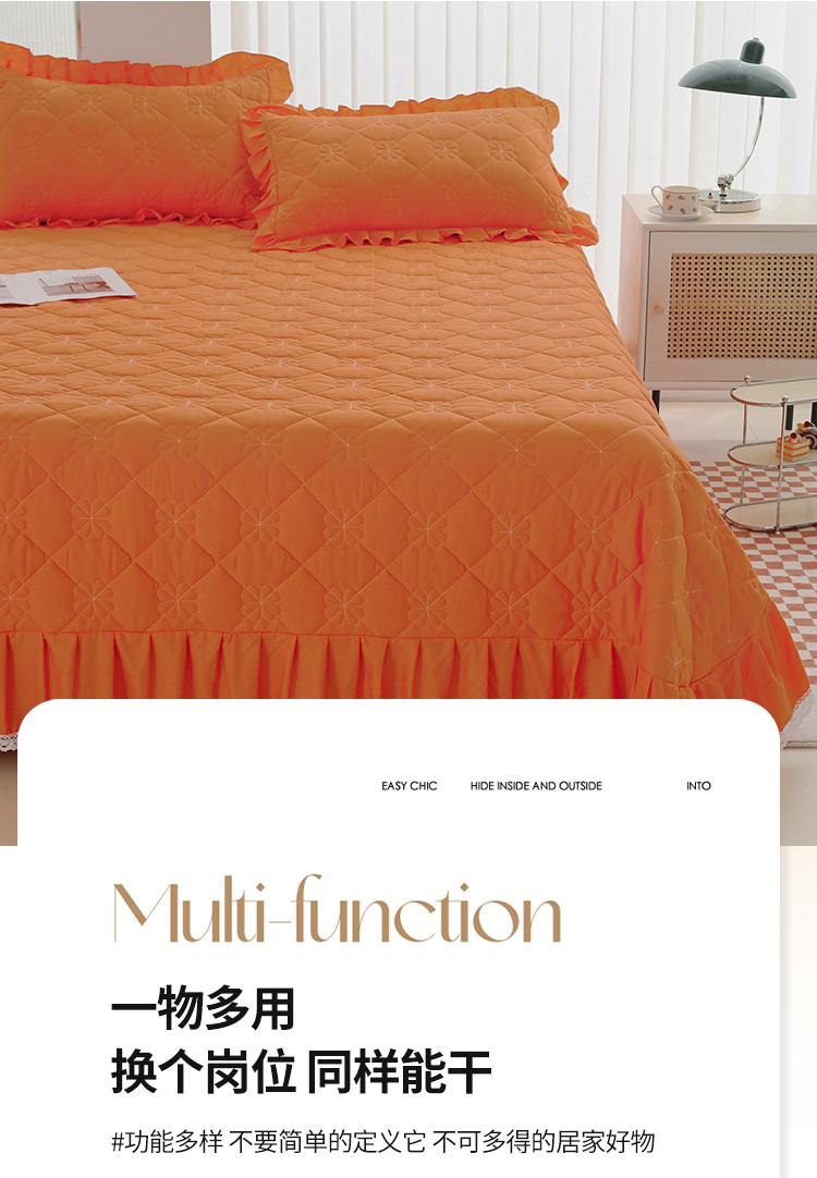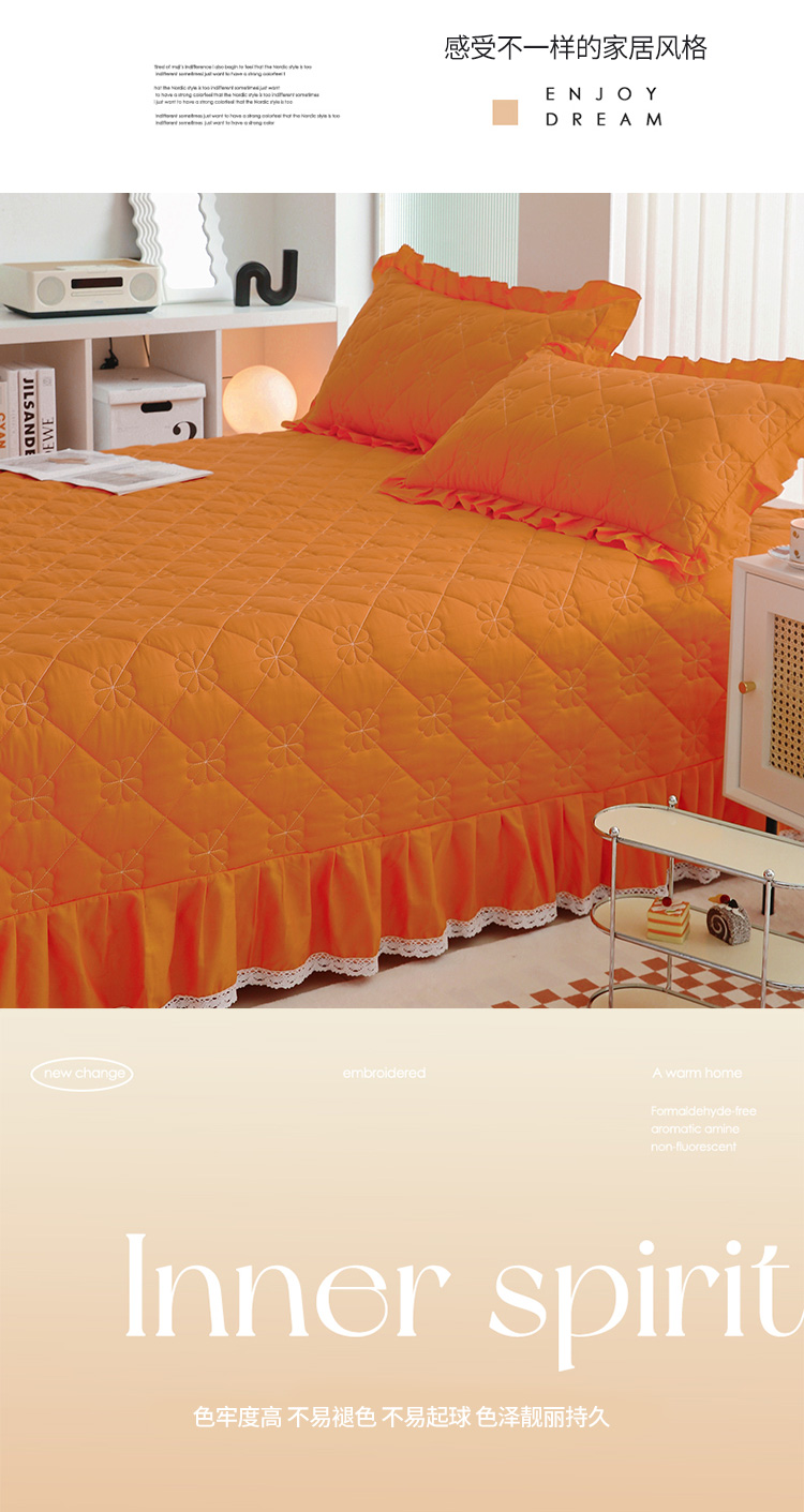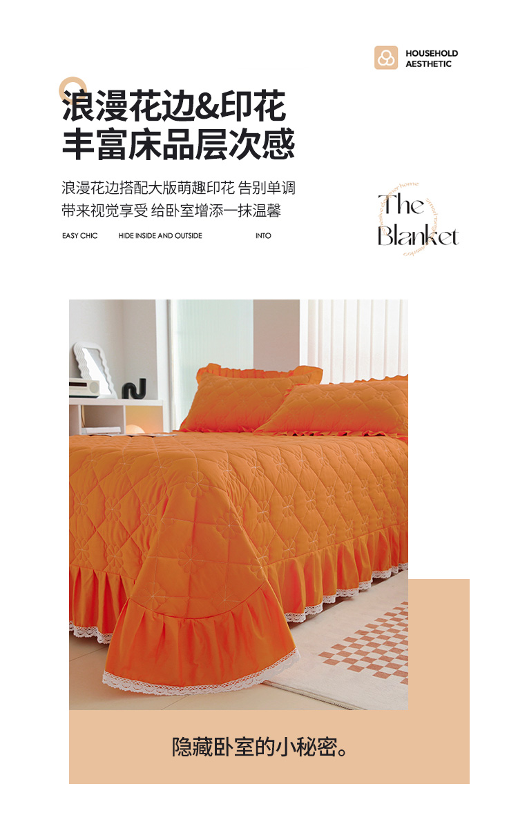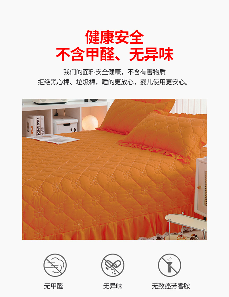 (总)情煊家纺 2024新款全棉亲肤夹棉纯色床裙,奶白,桔色,浅驼,灰蓝,粉玉,绅士灰,豆沙
